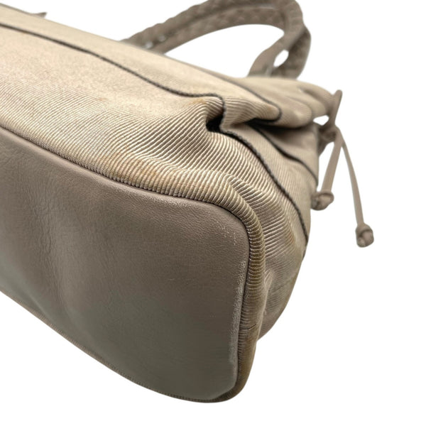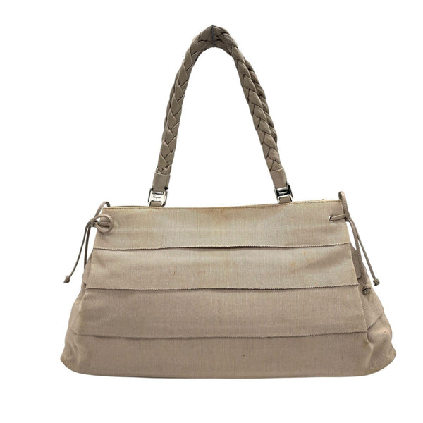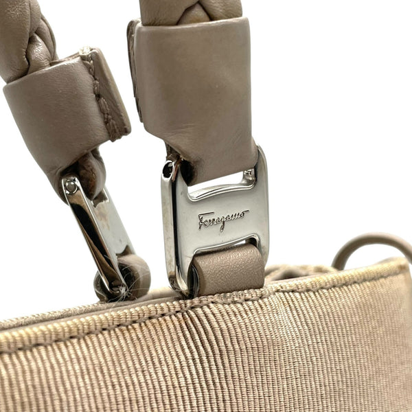 Salvatore Ferragamo handbag, gray canvas tote bag with braided leather handles, shoulder K2