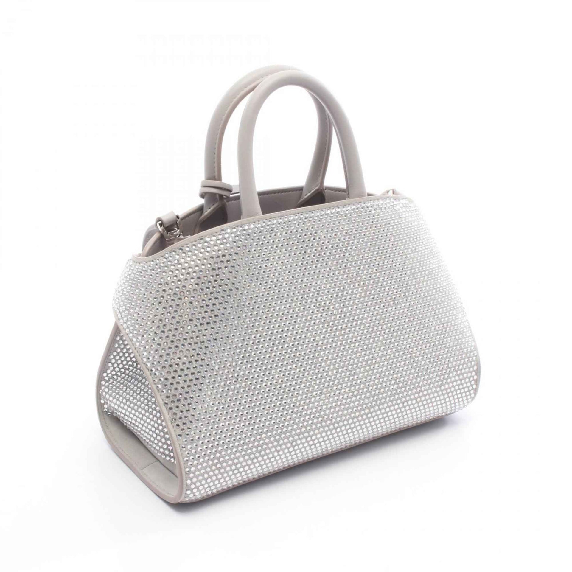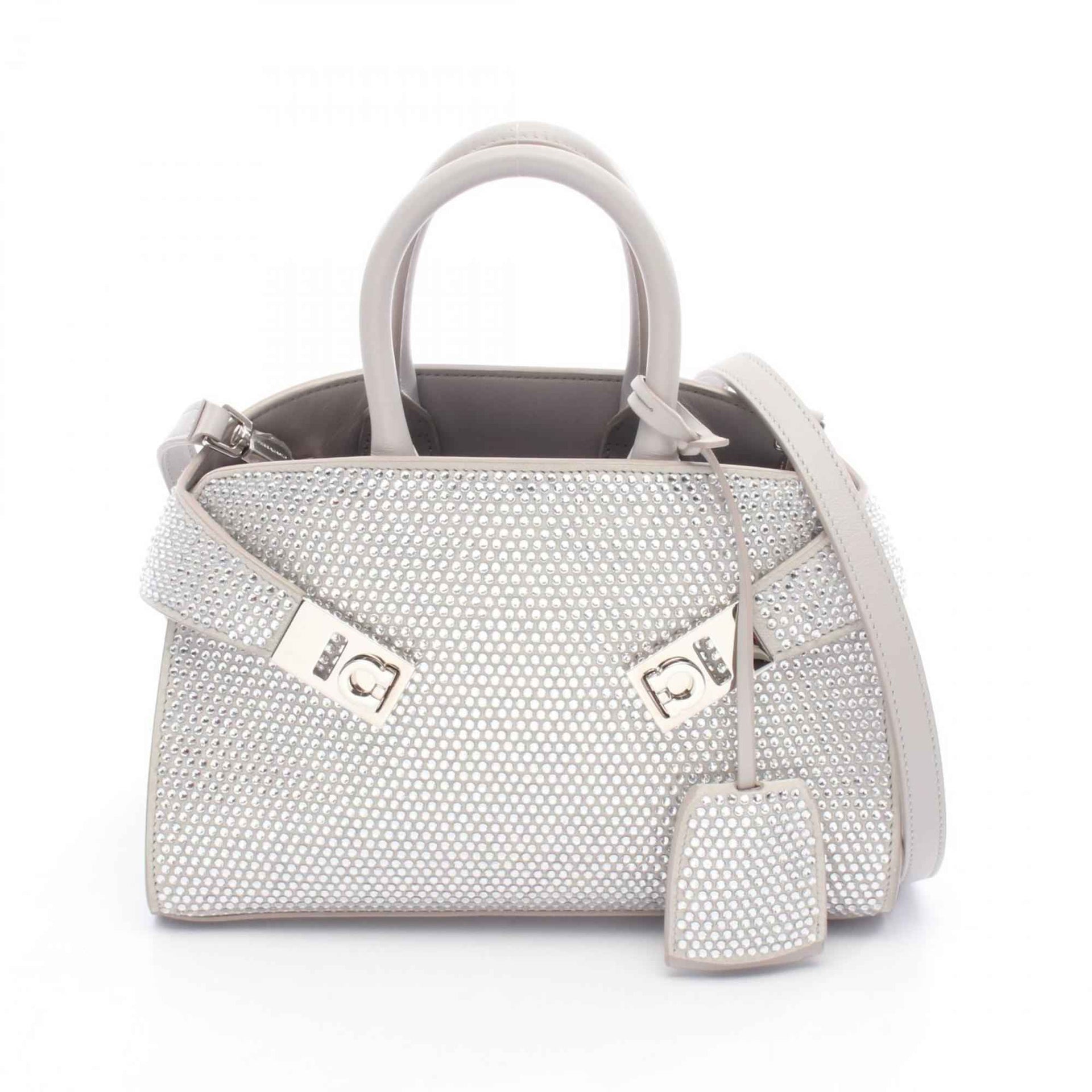Salvatore Ferragamo HUG Mini Handbag, Suede Leather with Rhinestones, Women\'s, Gray and Clear
