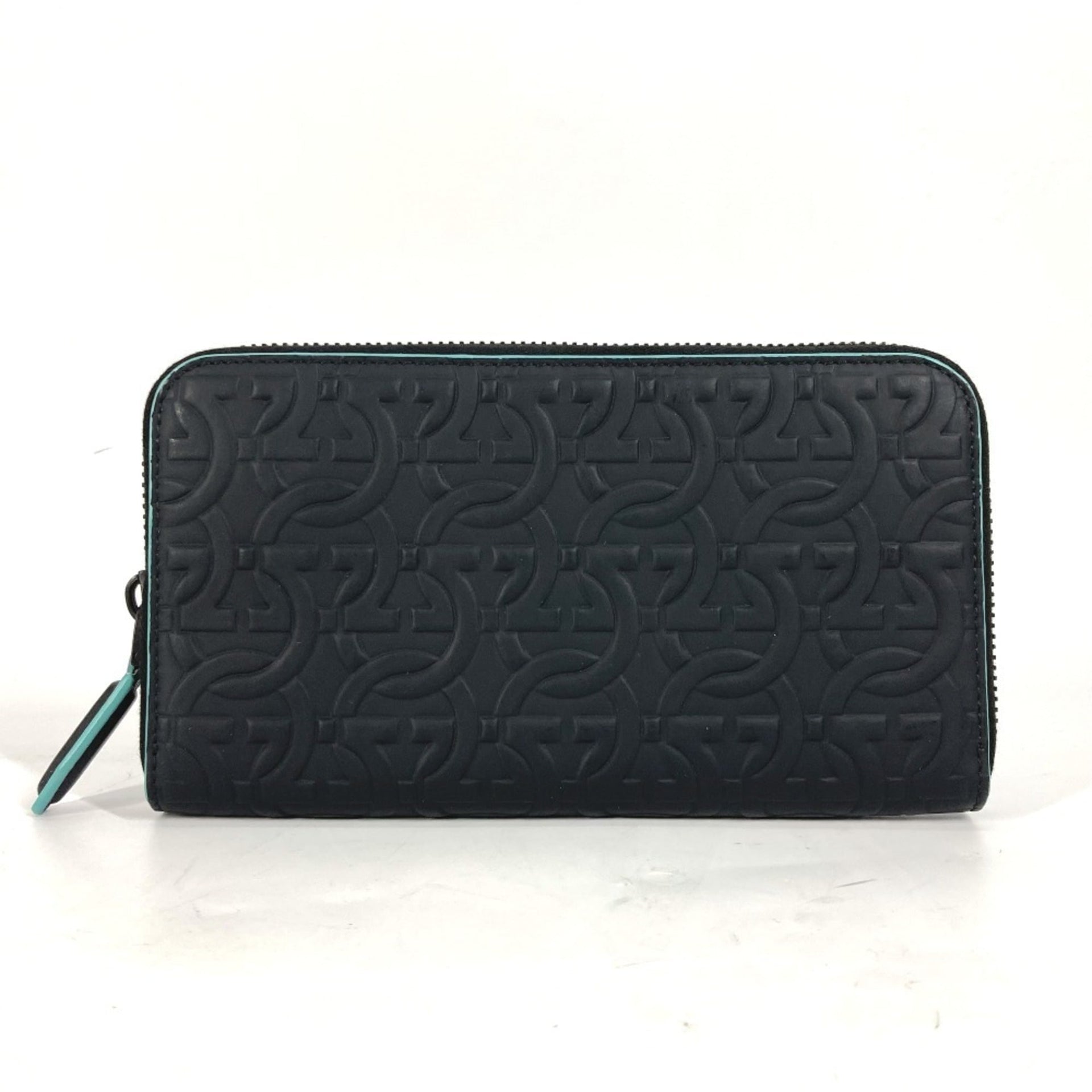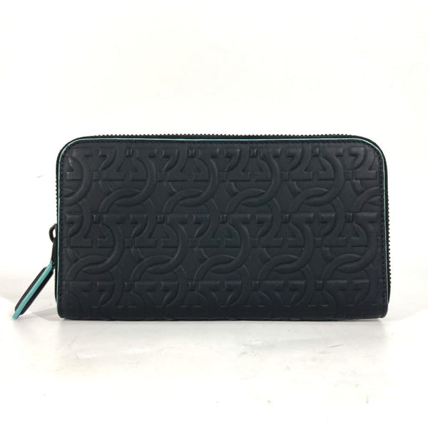 Salvatore Ferragamo Long Wallet Gancini Round Zipper Leather Men\'s Black