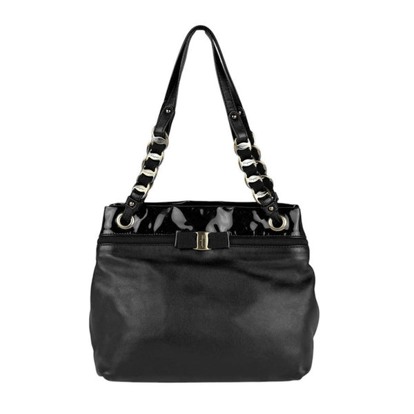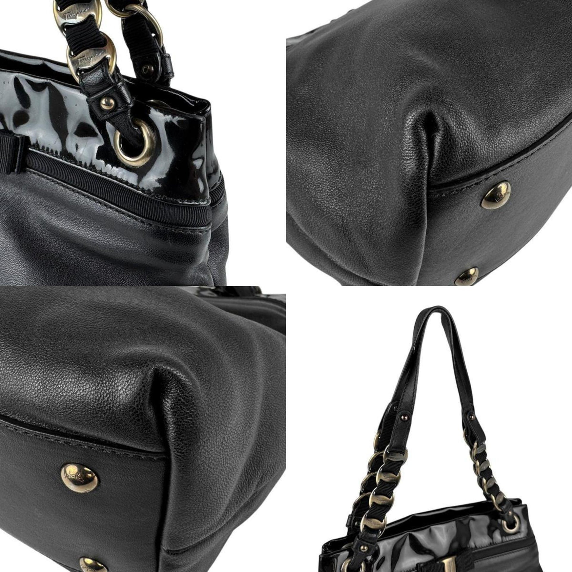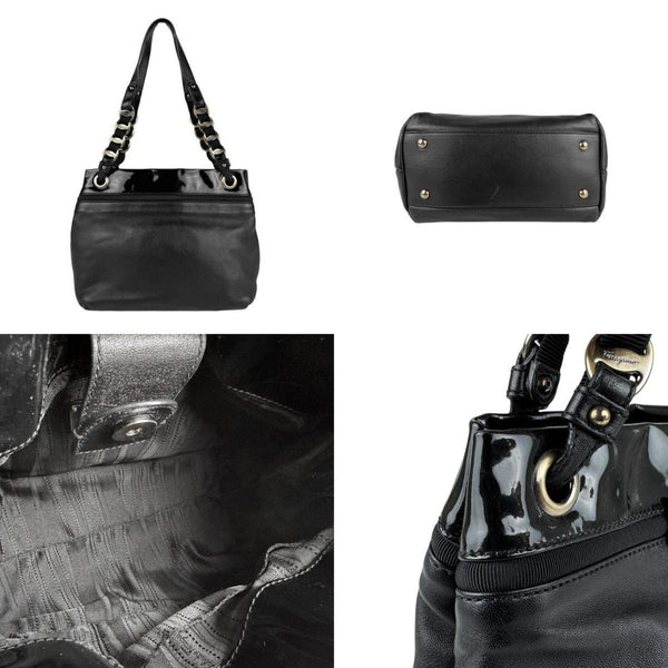 Salvatore Ferragamo Shoulder Bag Vara Ribbon Leather Patent Black Women\'s z4421