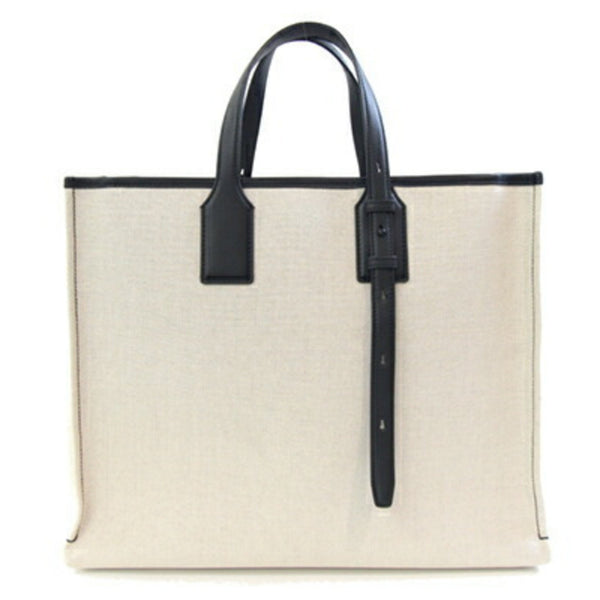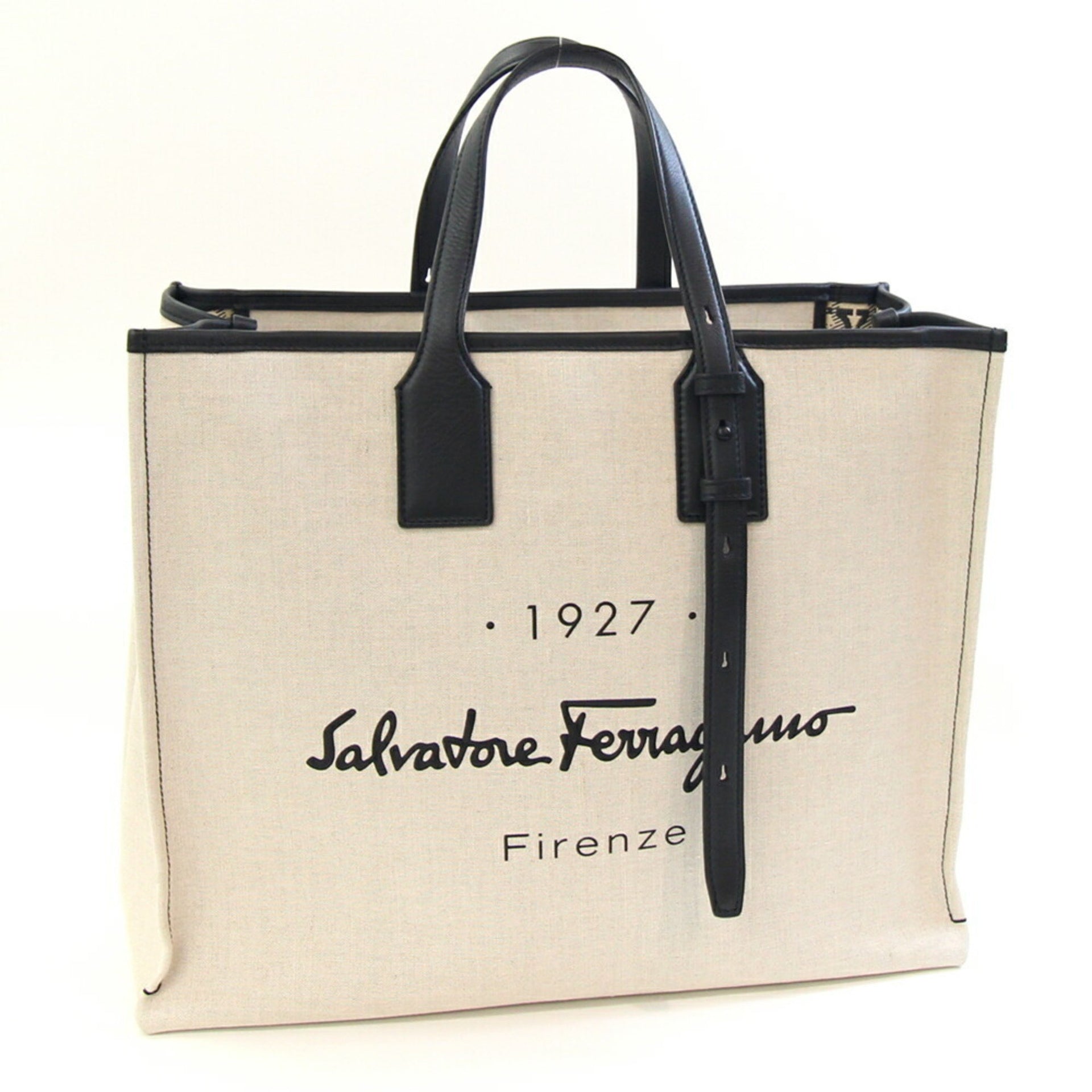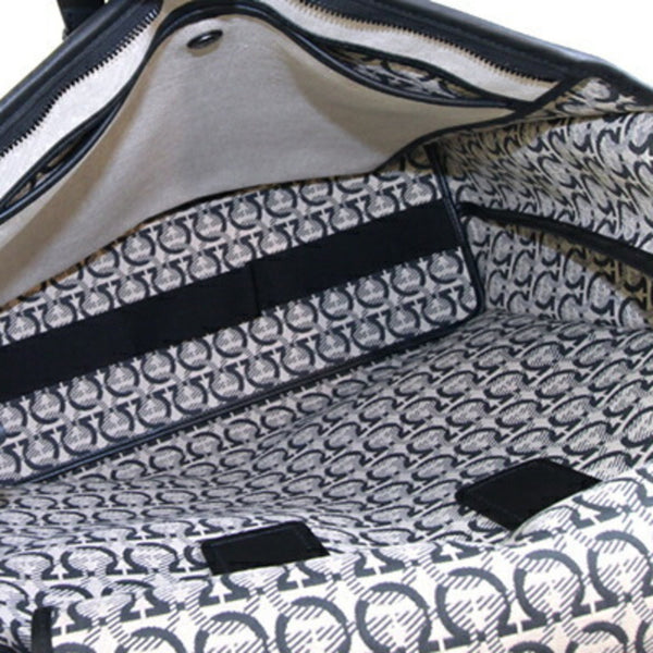 Salvatore Ferragamo Tote Bag, Size 24, 0842, Natural Black Canvas and Leather Large Tote, Gancini, Men\'s