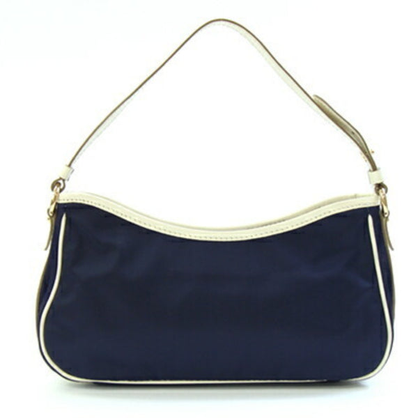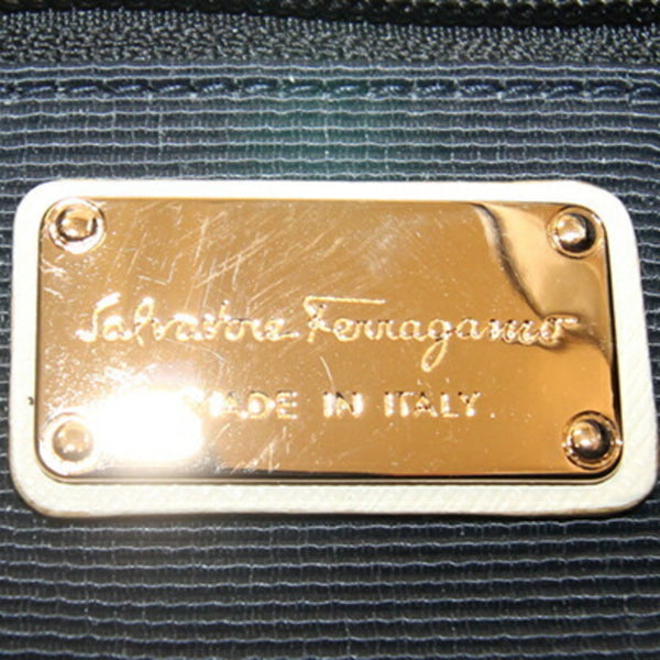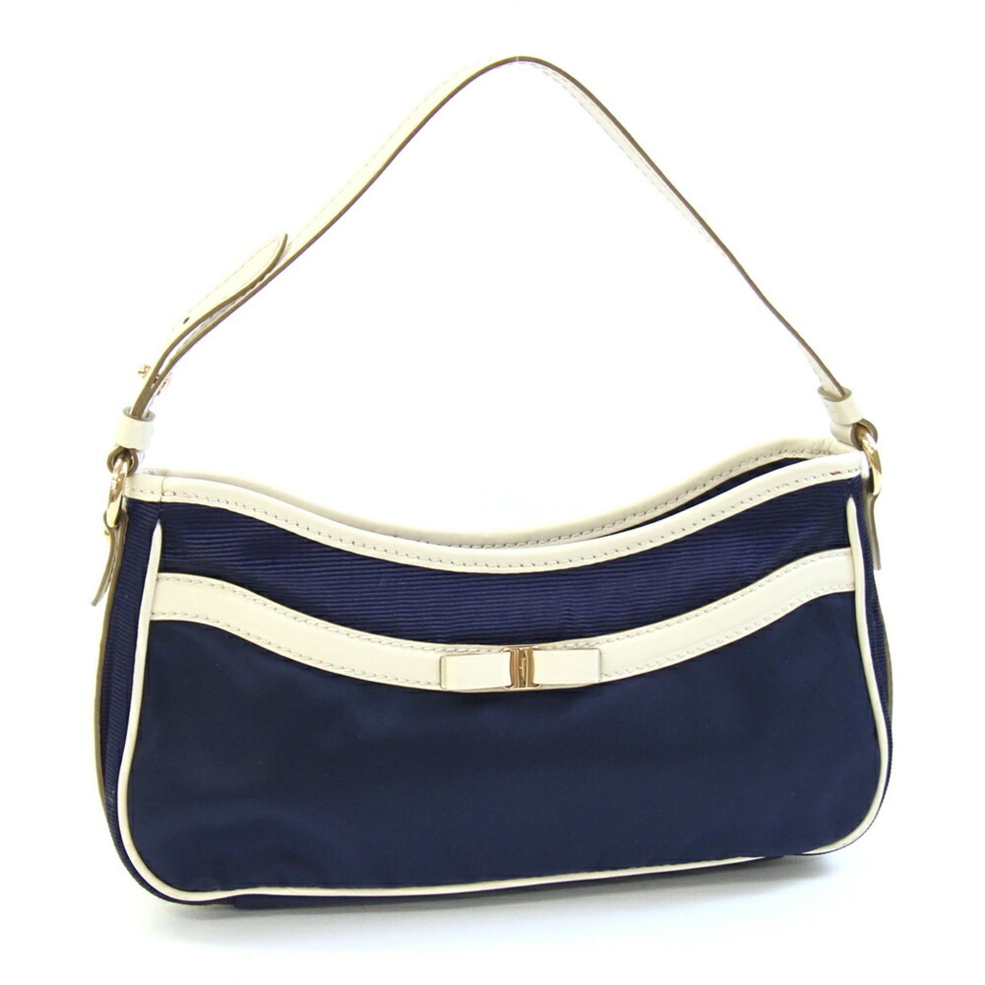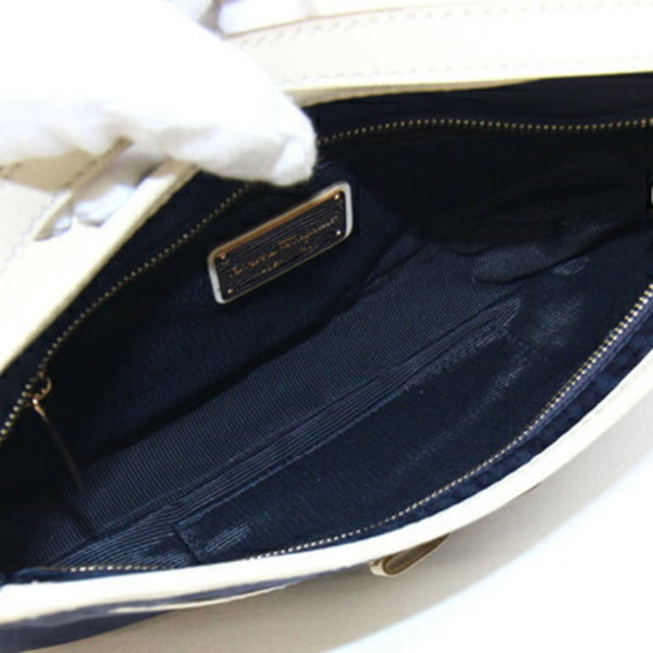 Salvatore Ferragamo Vara 21 Pouch C642 Navy and Ivory White Nylon Leather Handbag with Ribbon, Women\'s