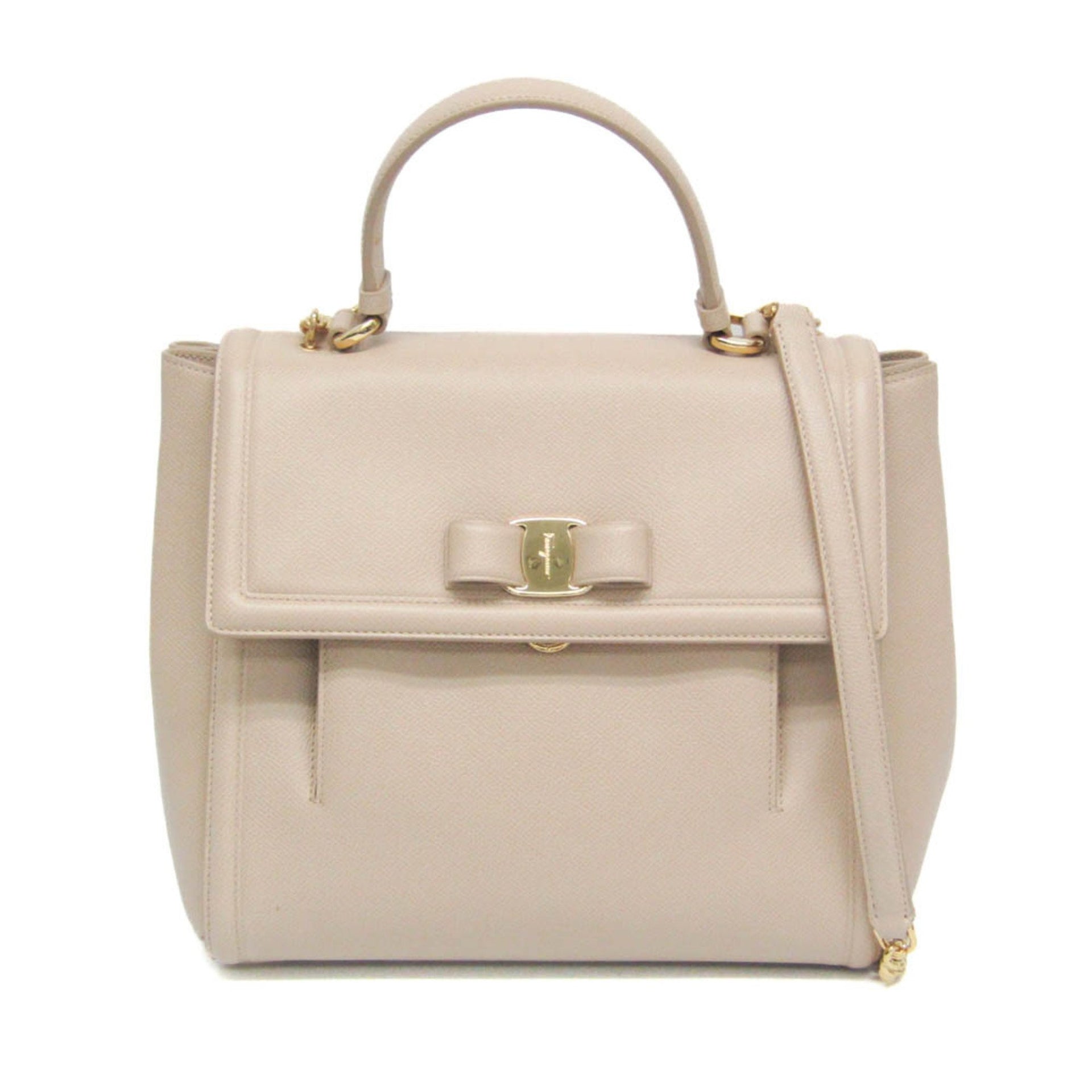 Salvatore Ferragamo Vara AU-21 G697 Chain Shoulder Bag Women\'s Leather Handbag,Shoulder Bag Pink Beige
