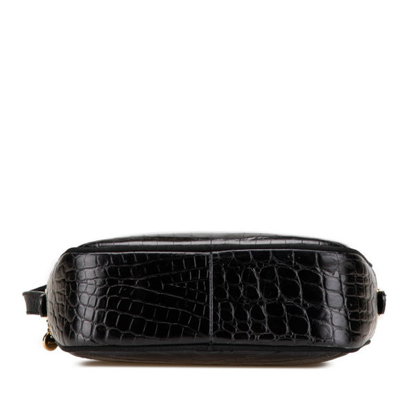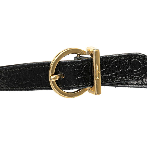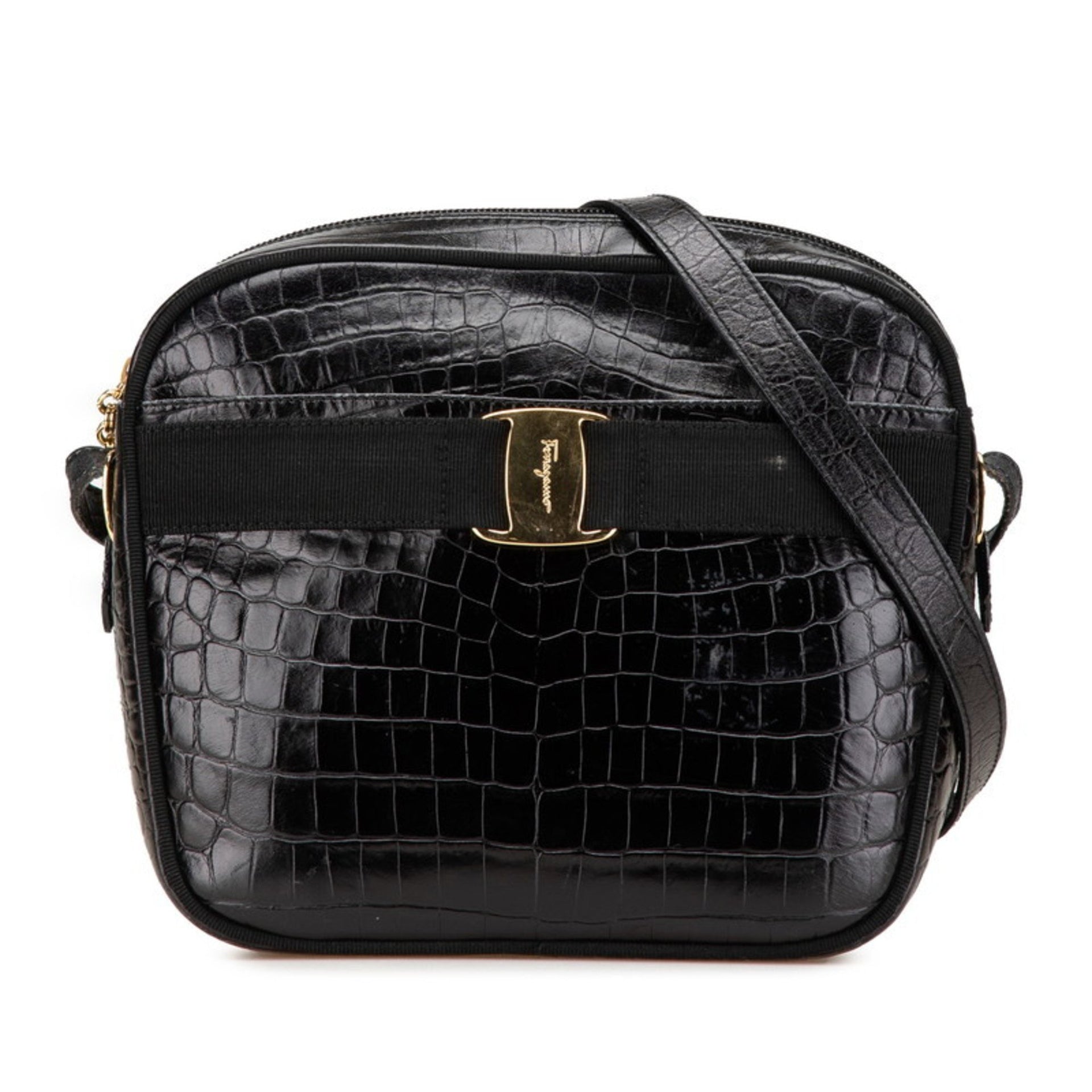 Salvatore Ferragamo Vara Crocodile Embossed Crossbody Shoulder Bag AF-21 6677 Black Leather Women\'s