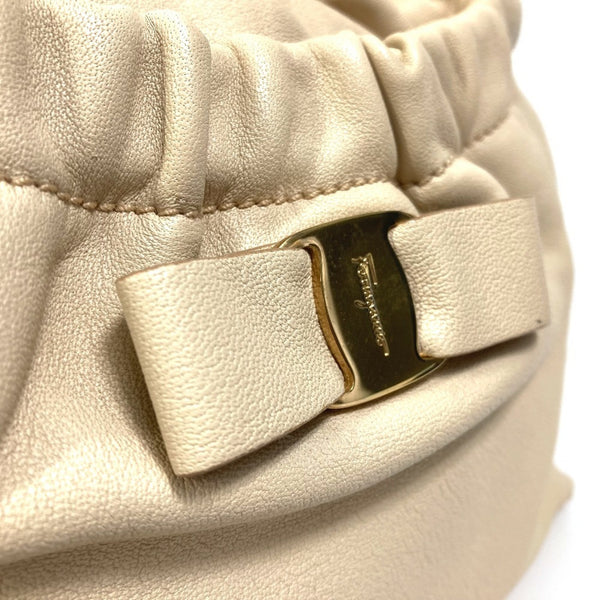 Salvatore Ferragamo Vara Georgette 2-Way Shoulder/Handbag, Light Beige Leather, for Women