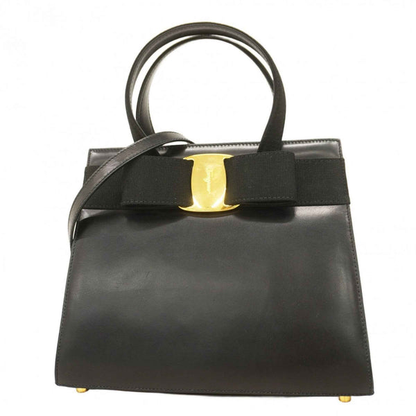Salvatore Ferragamo Vara Leather Handbag, Black, 2-Way Bag for Women