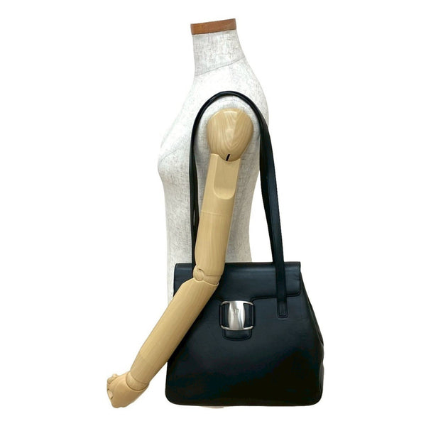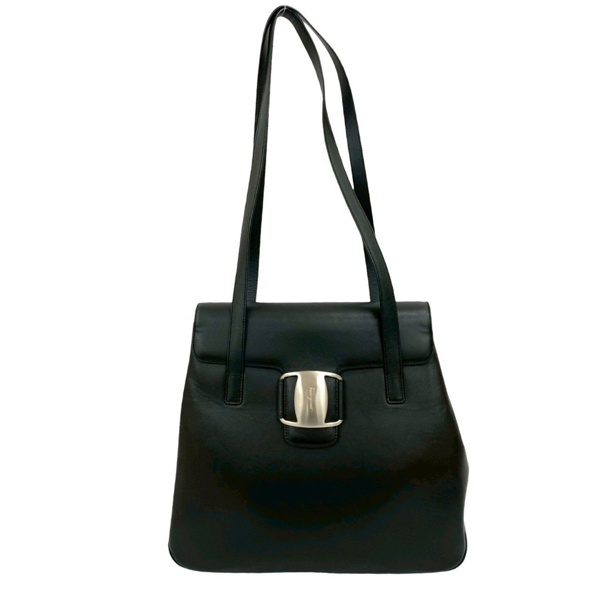 Salvatore Ferragamo Vara Leather Semi-Shoulder Bag/Mini Tote Bag in Black (28713) with Hardware