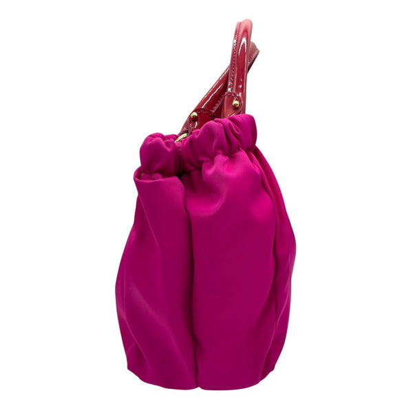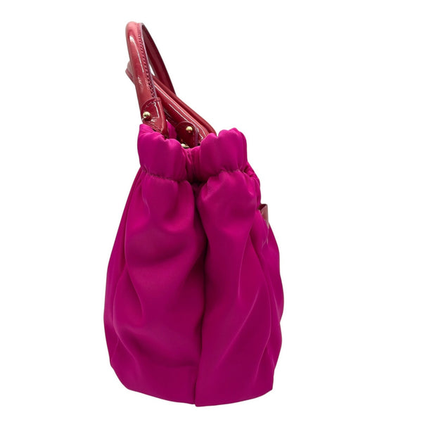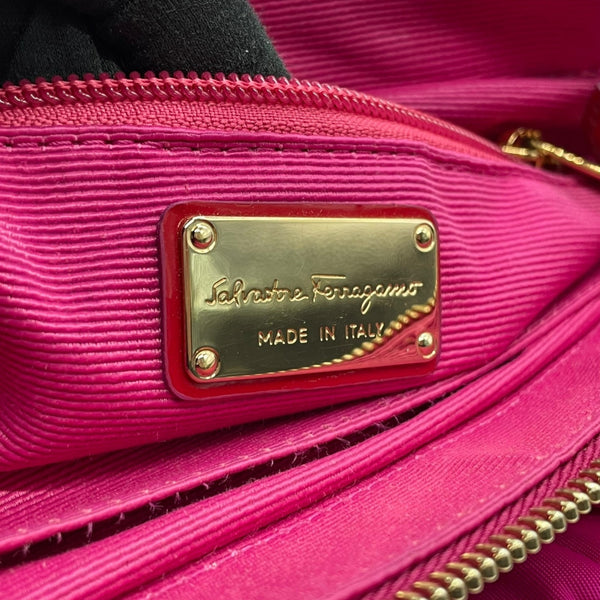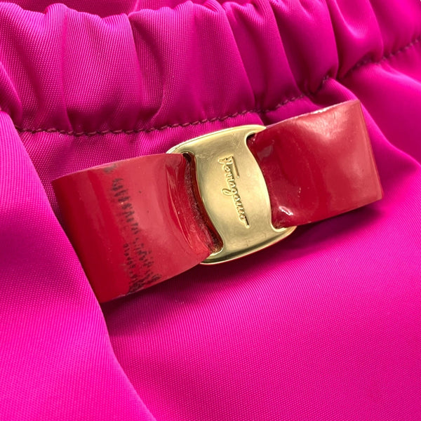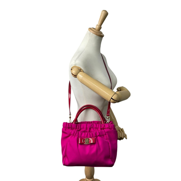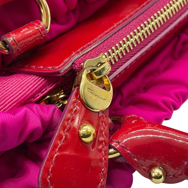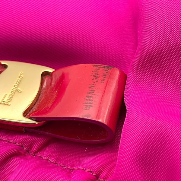 Salvatore Ferragamo Vara Ribbon 2-Way Shoulder/Crossbody Bag in Pink and Red Nylon with Patent Leather Gold Hardware, Women\'s, K1