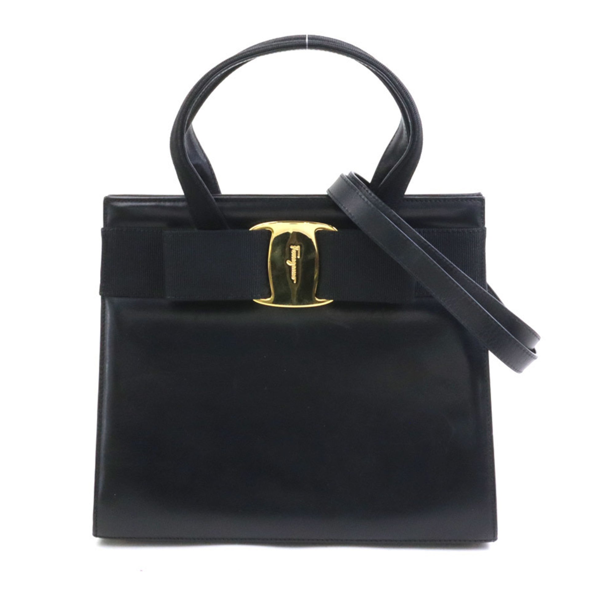 Salvatore Ferragamo Vara Ribbon Leather Handbag/Shoulder Bag, Black, Women\'s, r10746a