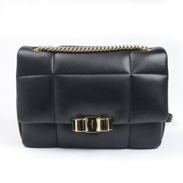Salvatore Ferragamo Vara Ribbon Quilted Chain Shoulder Bag in Black for Women