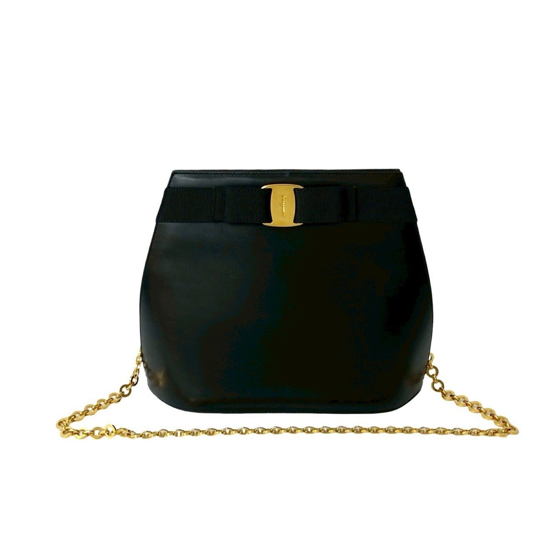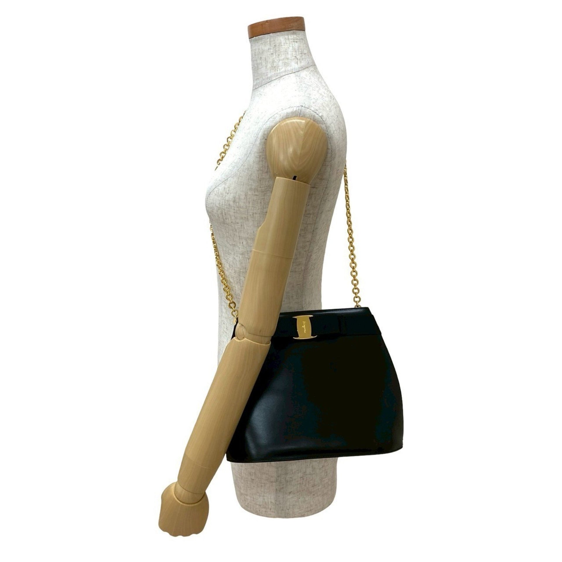 Salvatore Ferragamo Vara Ribbon shoulder bag in black calf leather with genuine chain, 17184