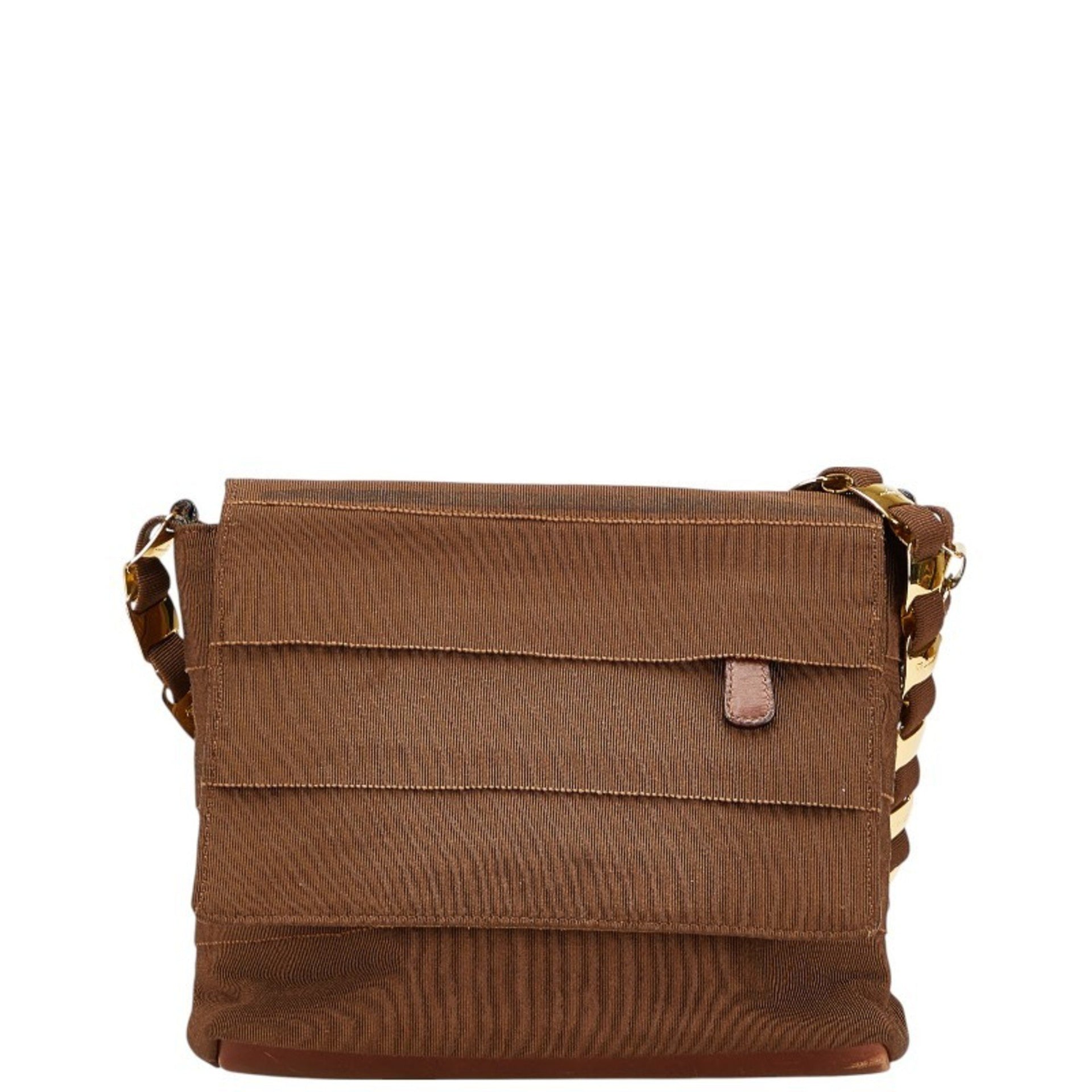 Salvatore Ferragamo Vara Shoulder Bag in Brown and Gold Canvas for Women
