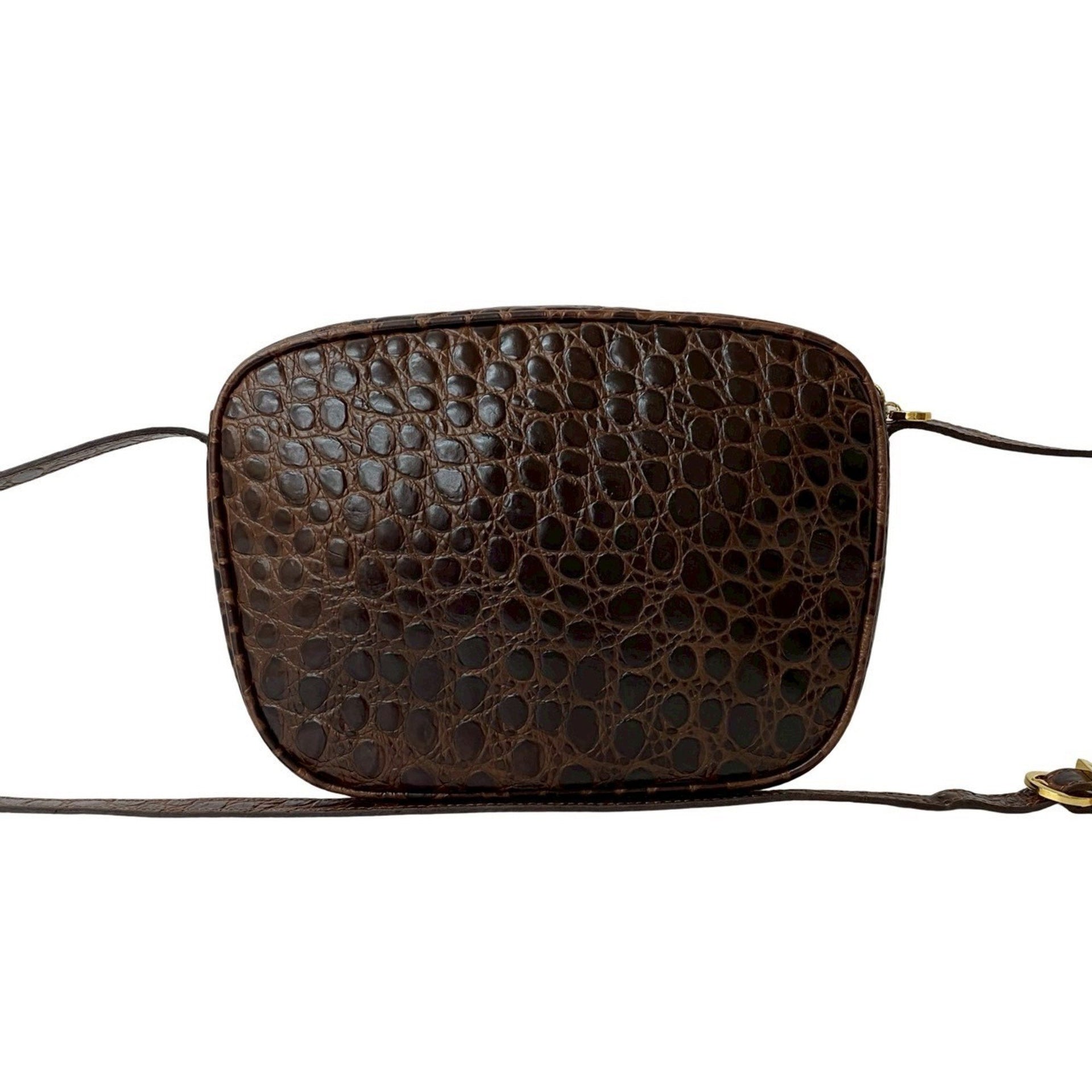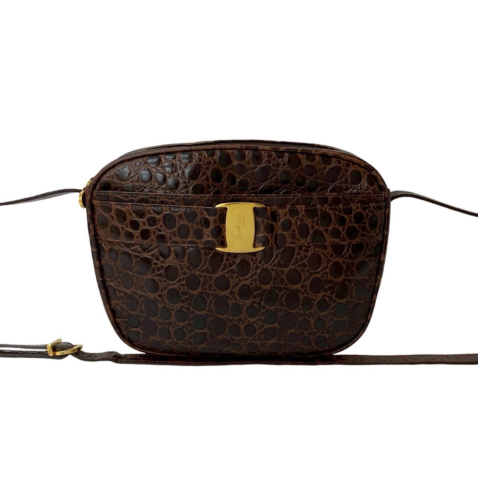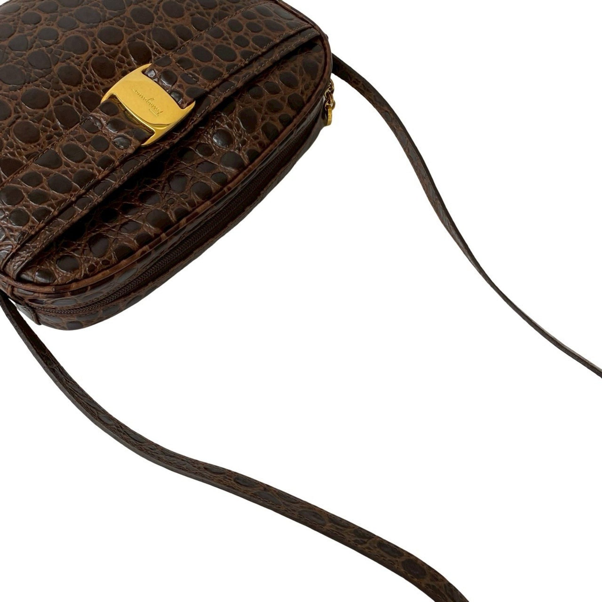 Salvatore Ferragamo Vara shoulder bag/pouch with crocodile-embossed leather hardware, brown, 38170
