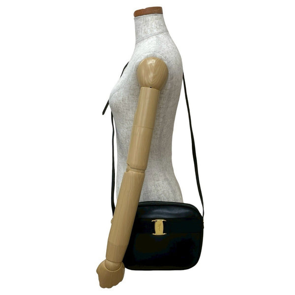 Salvatore Ferragamo Vara shoulder bag with hardware and genuine leather, black, 44994
