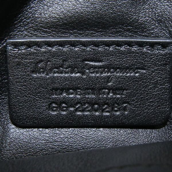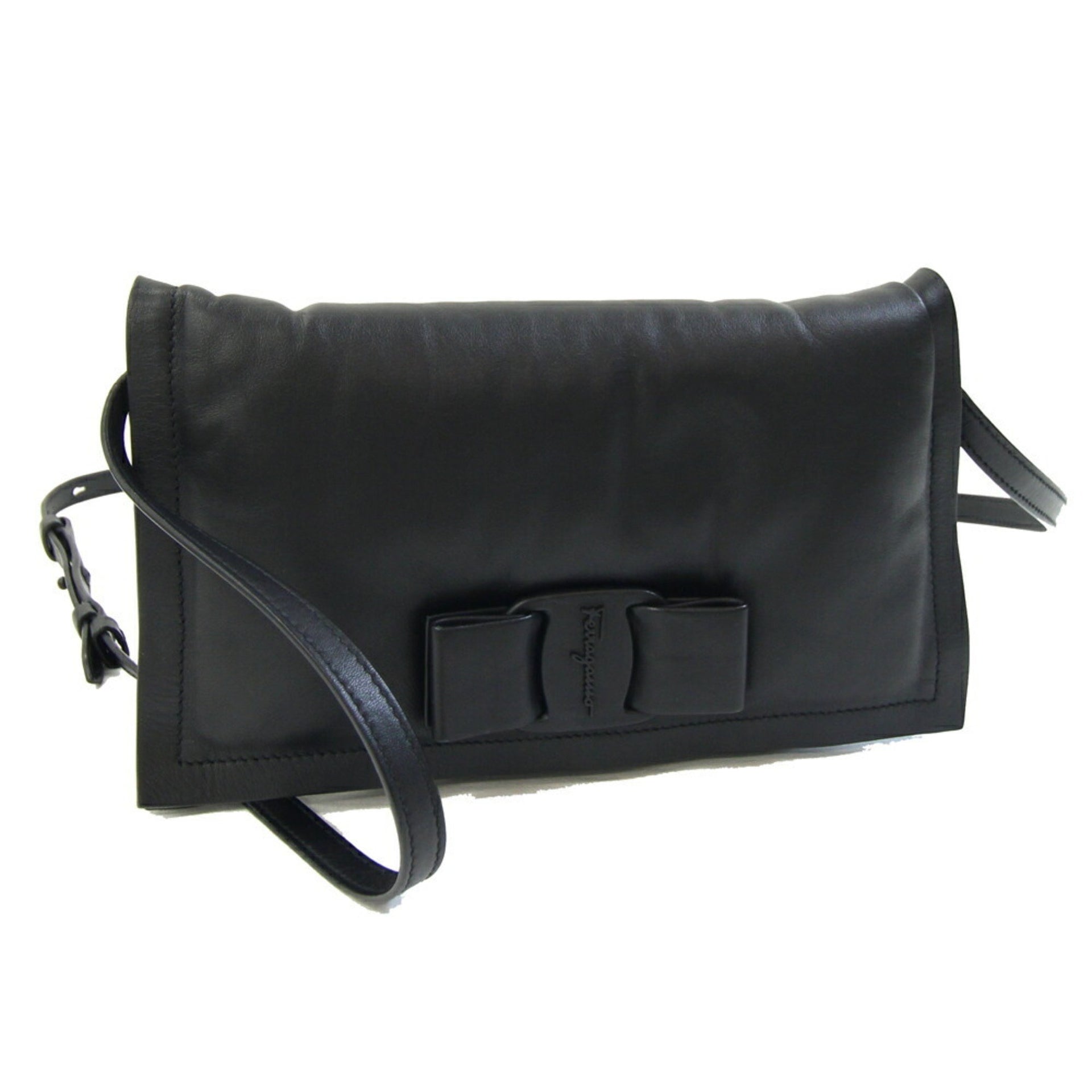 Salvatore Ferragamo Vara Viva Bow Shoulder Bag 220287 Black Leather Crossbody VIVA BOW Pochette with Ribbon, Women\'s