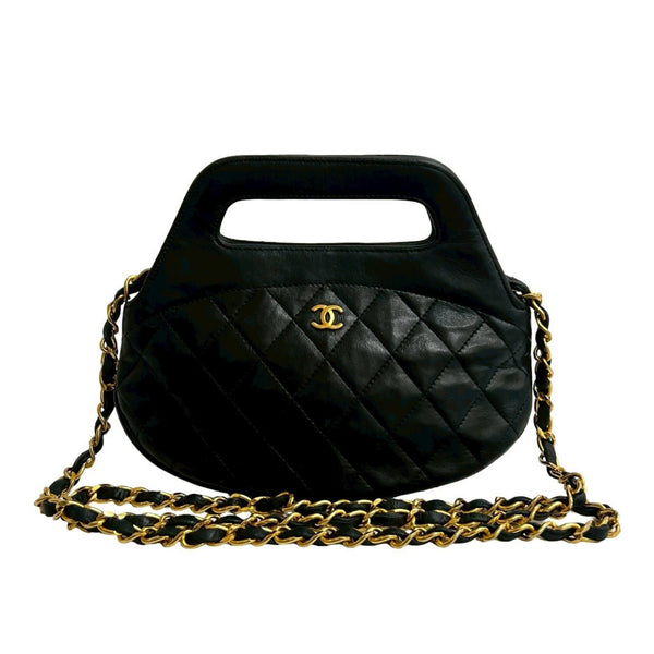 Seal No. 1 CHANEL Vintage Matelasse Coco Leather 2-Way Handbag/Chain Shoulder Bag, Black, 38336