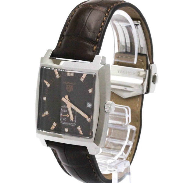 TAG HEUER Monaco Diamond Steel Leather Quartz Watch WAW131E