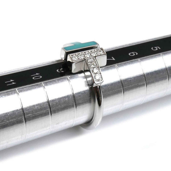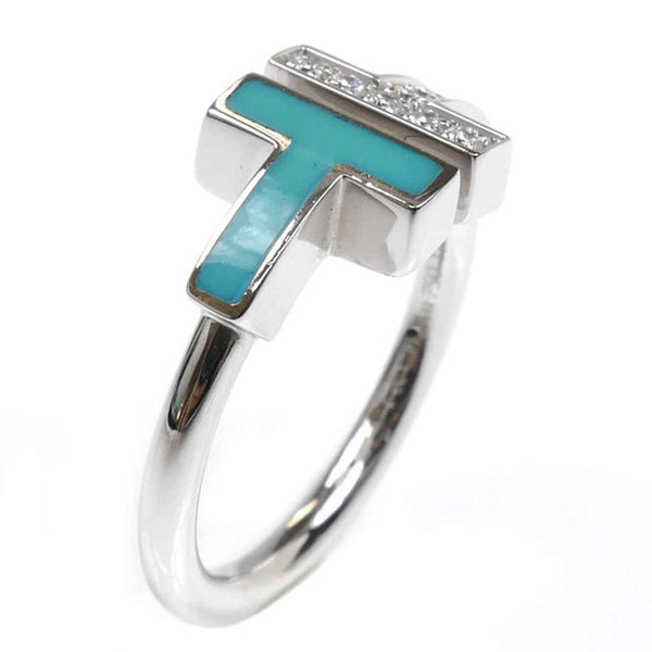 TIFFANY & Co. 18K White Gold T-Wire Turquoise and Diamond Ring, Size 8, 4.3g, Women\'s, 64028065