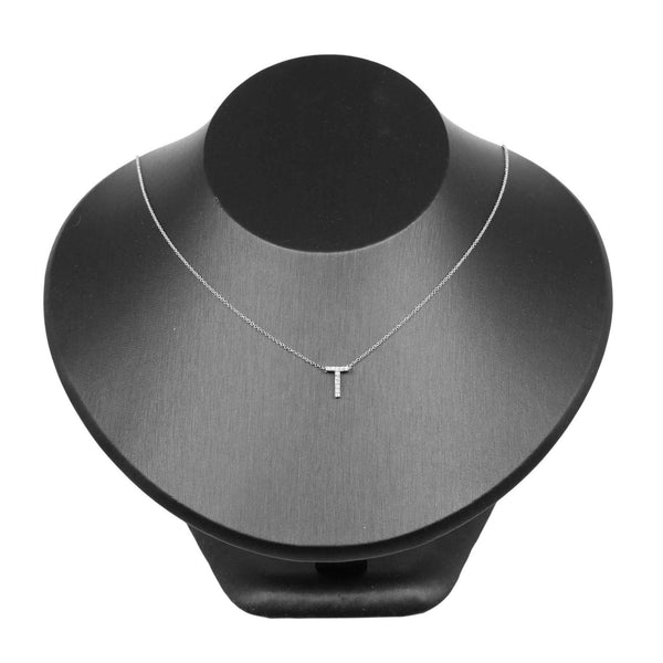 Tiffany & Co. Initial T Necklace in Platinum (Pt950) with Diamonds, Approx. 3g