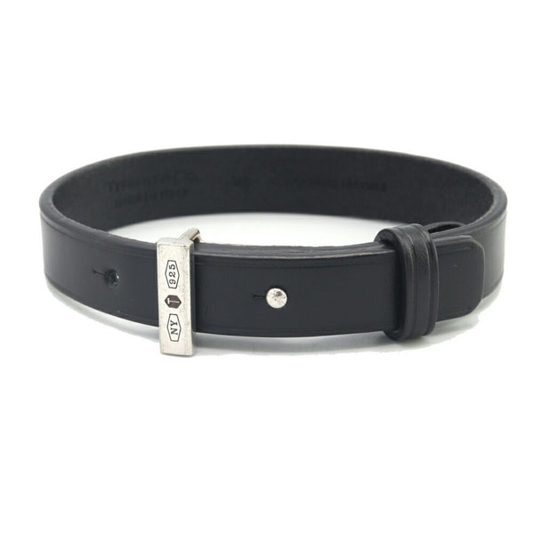 Tiffany & Co. Makers Black Sterling Silver 925 Leather Bracelet for Men and Women. TIFFANY CO.