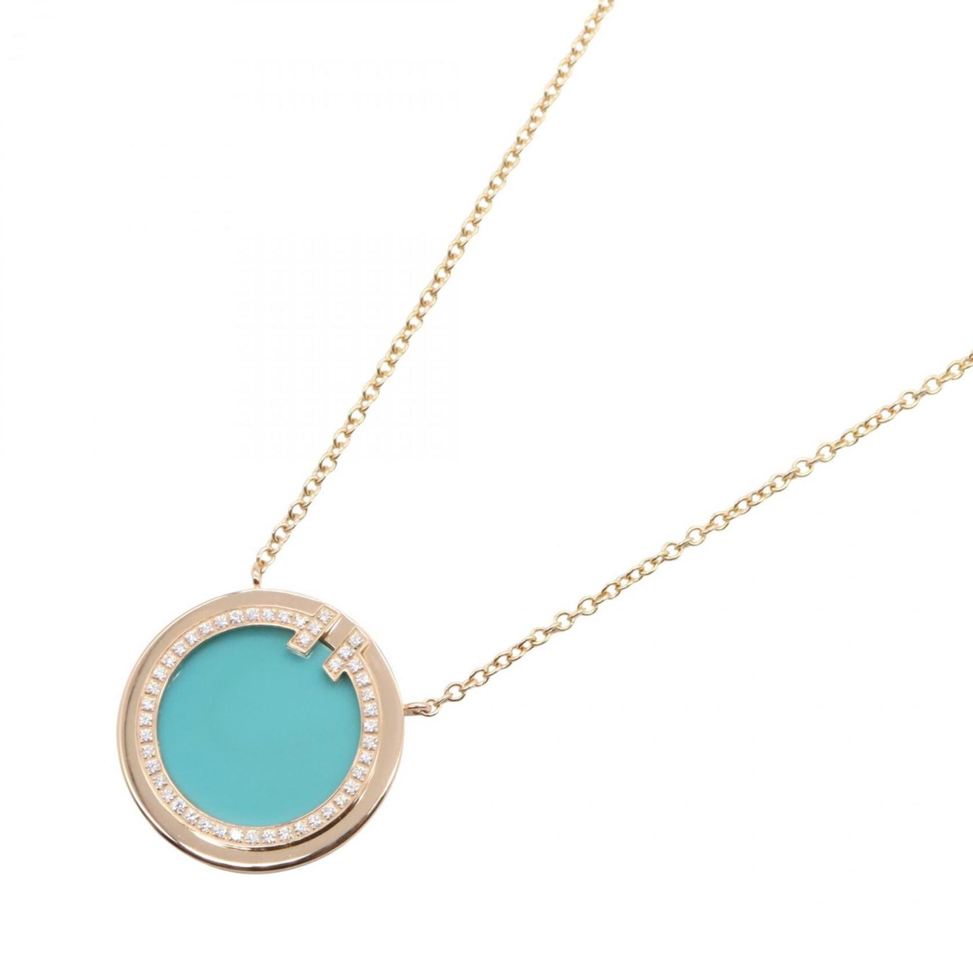 Tiffany & Co. T Two Circle Turquoise and Diamond Necklace, 18K Pink Gold, Diamond, Turquoise, Women\'s, Blue, Clear