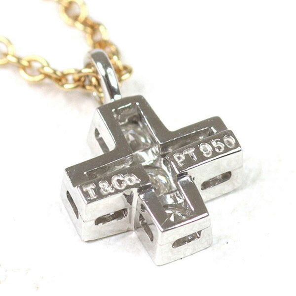 Tiffany Crucyform Cross Pendant 750YG PT950 Diamond 41cm Necklace