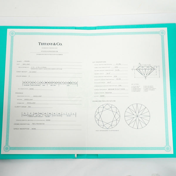 Tiffany Harmony Ring, 1PD, Pt950 Platinum, Diamond, 0.20ct, Size 7.5, Women\'s