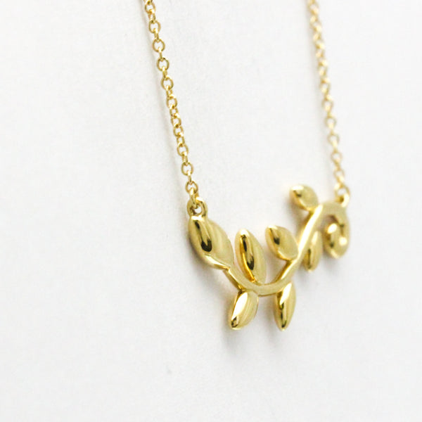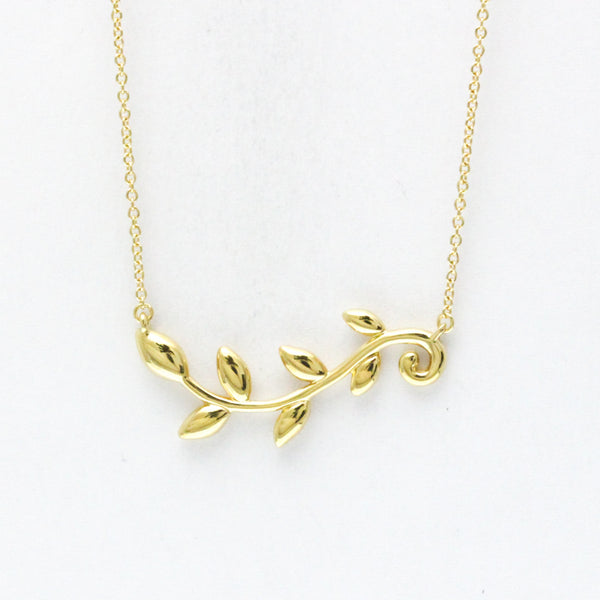 Tiffany Olive Leaf Necklace Yellow Gold (18K) No Stone Men,Women Fashion Pendant Necklace (Gold)