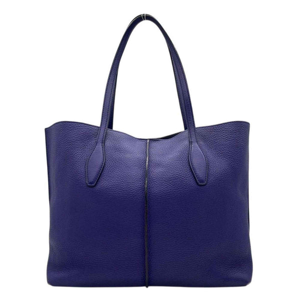 Tod\'s Purple Leather Tote Bag, Grained Leather, One-Shoulder Logo Charm, U2