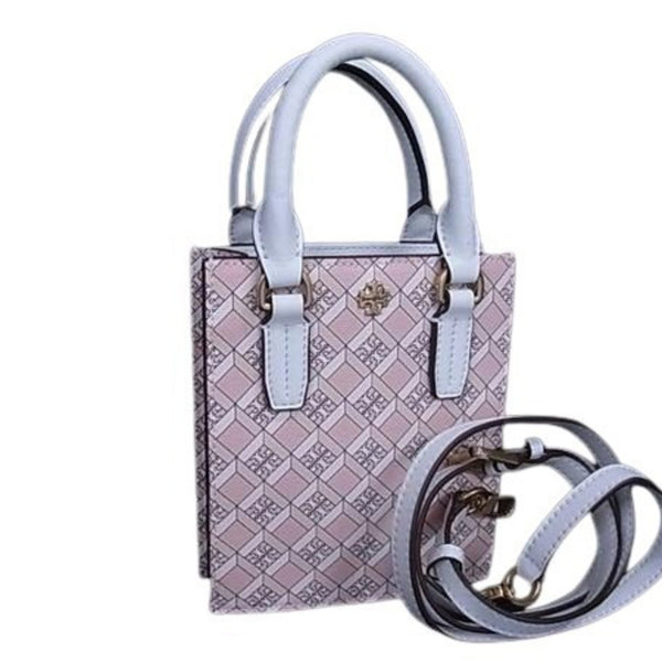 TORY BURCH Emerson Mini Shopper Tote GEO 10009171, pink and white leather shoulder bag for women