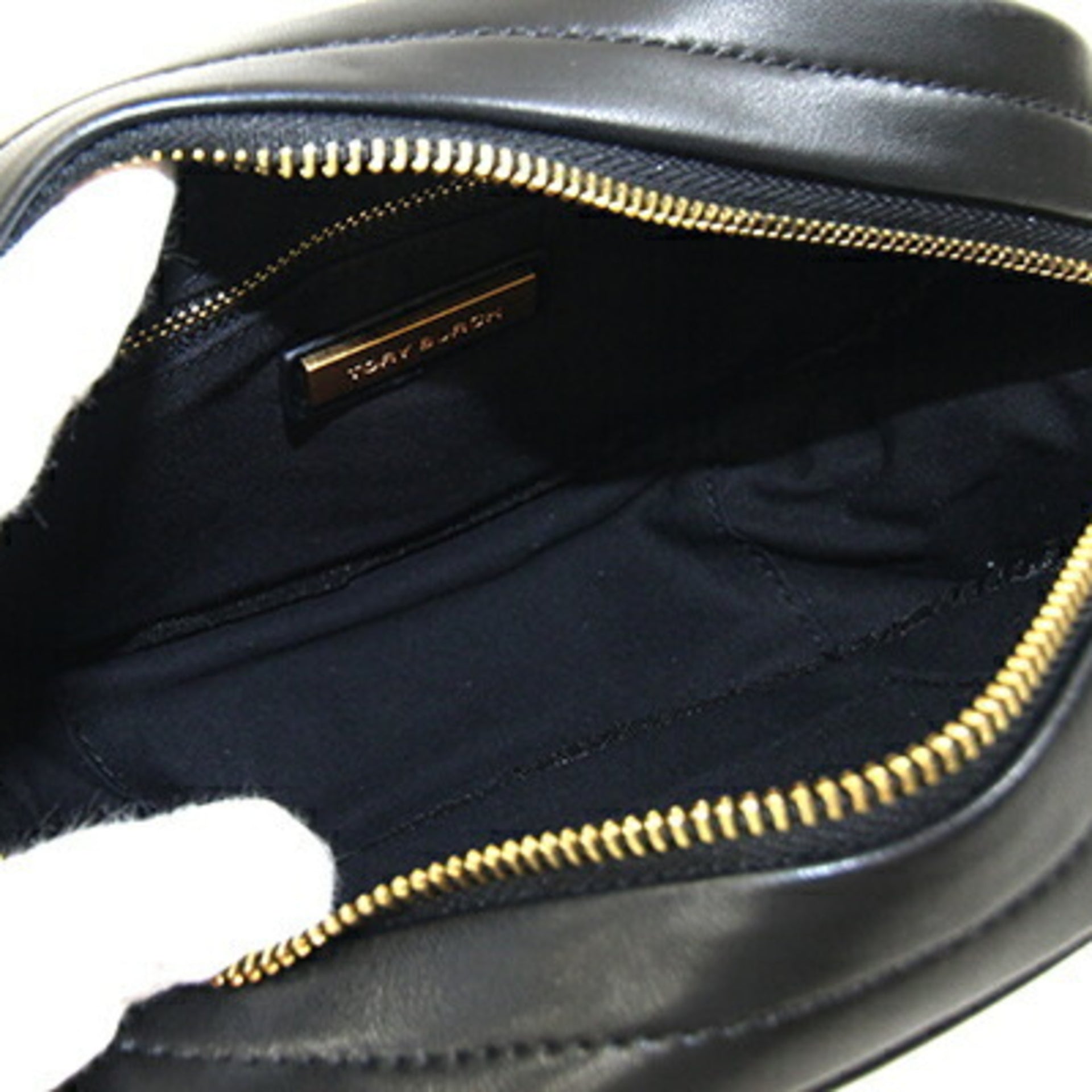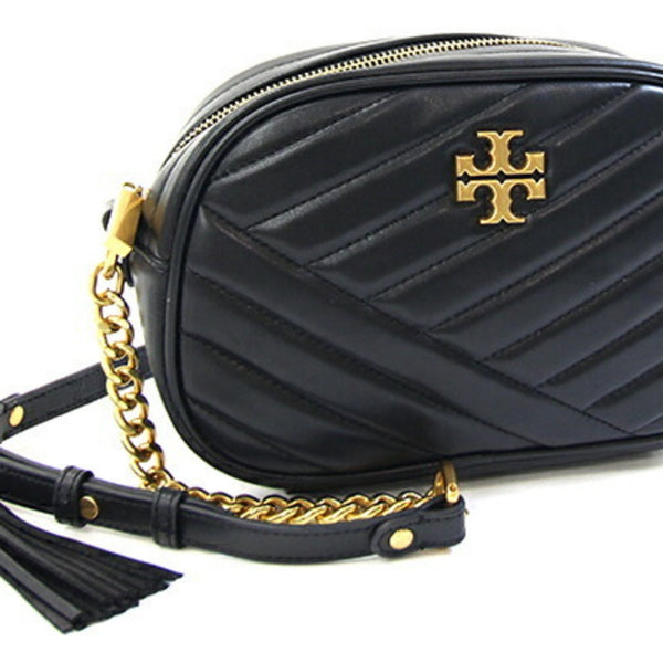 Tory Burch Kira Chevron Small Camera Bag 90450, Black Leather with Chain Shoulder Strap and Quilted Tassel, Women\'s