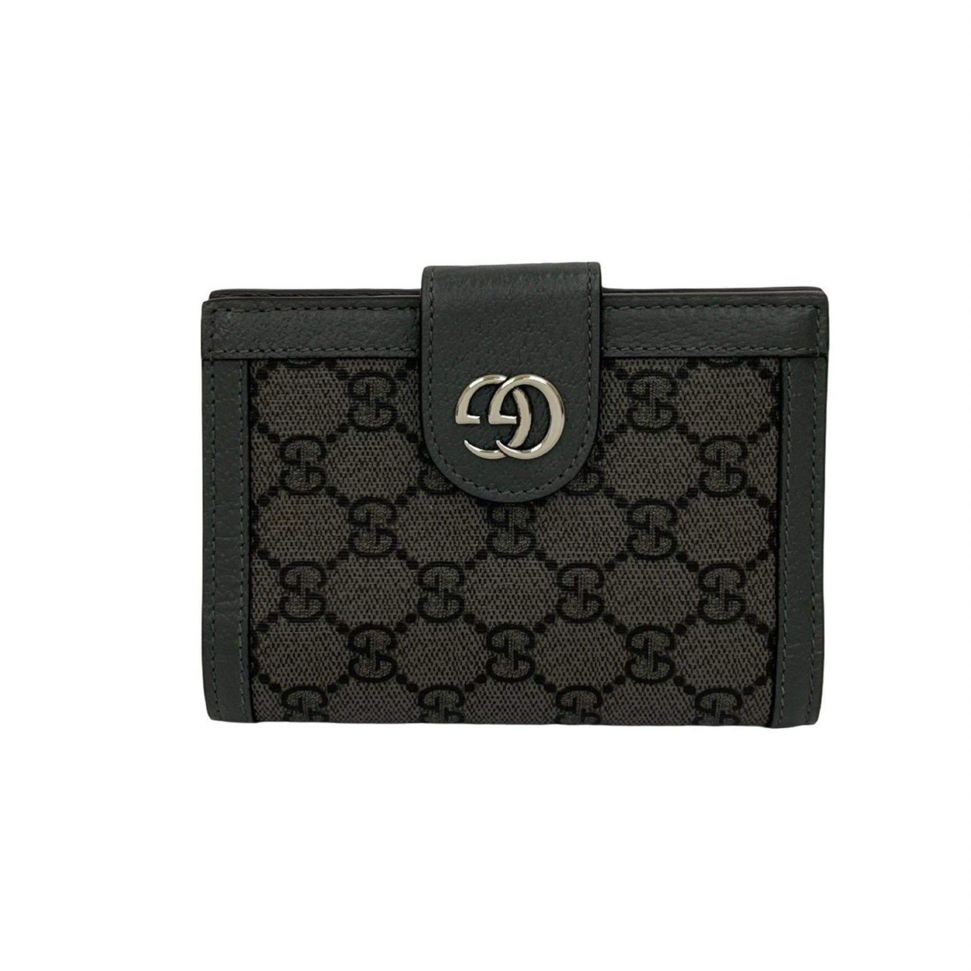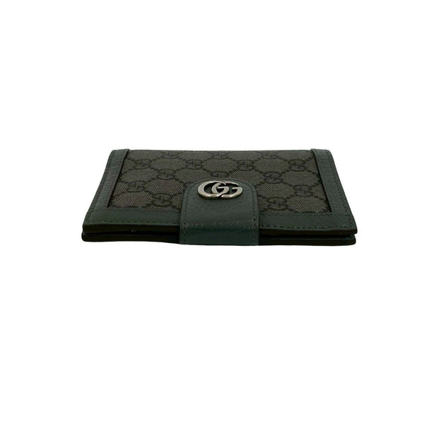 Unused GUCCI GG Supreme logo hardware leather bifold wallet/passport case, gray, 59971
