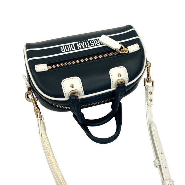Unused, stored Christian Dior Vibe Bowler Bag, Mini Leather, 2-way Handbag/Shoulder Navy, 86542