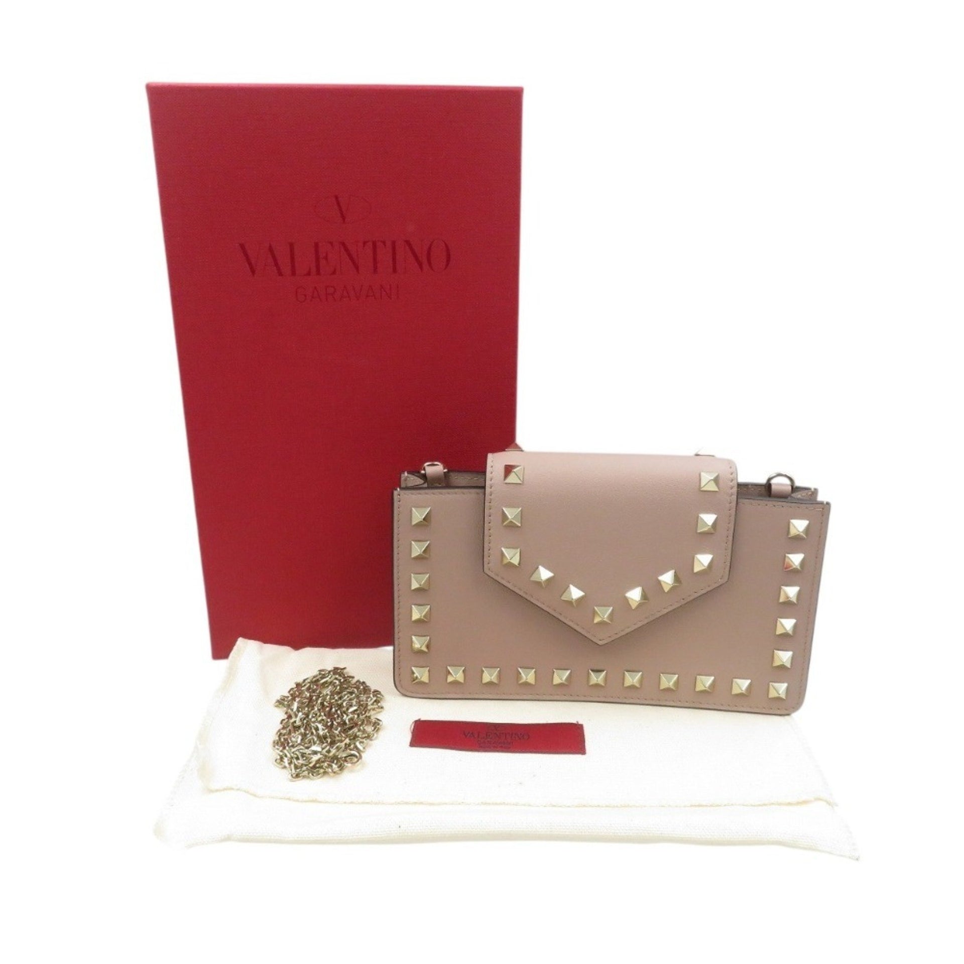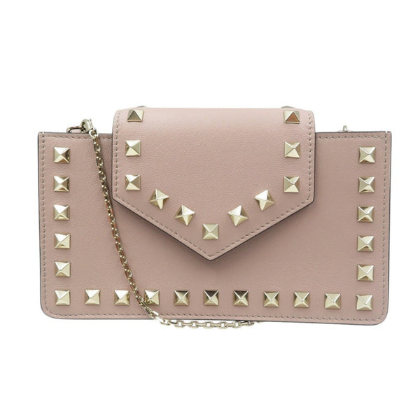 Unused Valentino Garavani Rockstud RW2P0Q13BOL calfskin with gold hardware, pink shoulder bag/phone case, 1521 VALENTINO GARAVANI