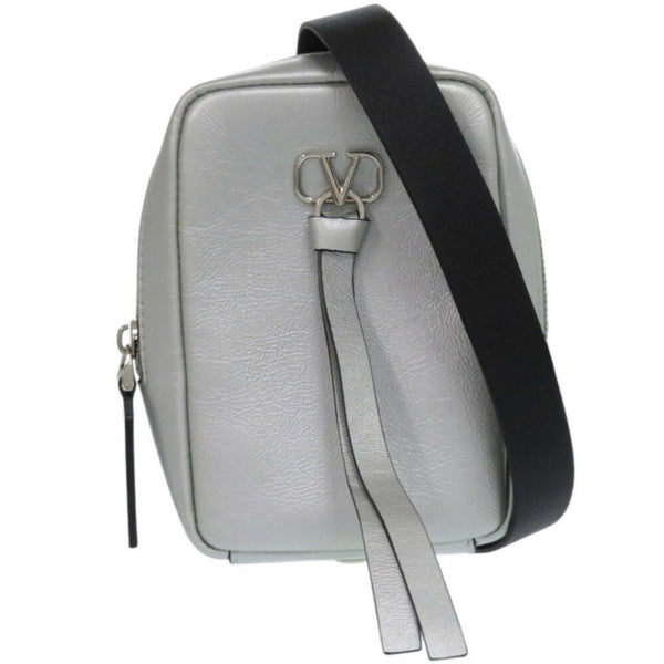 Valentino Garavani Neck Holder Leather Metallic Silver Shoulder Bag 1745Valentino
