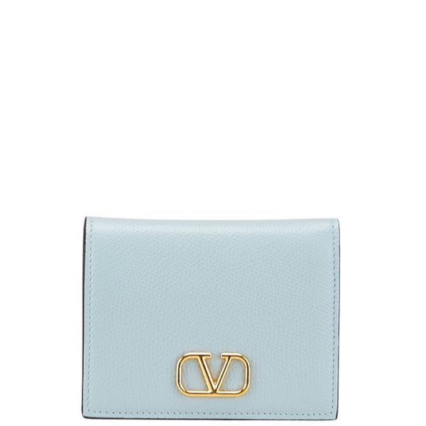Valentino Garavani V Logo Signature Small Bifold Wallet 5W2P0R39SNP Porcelain Blue Soft Grained Calfskin Women\'s VALENTINO
