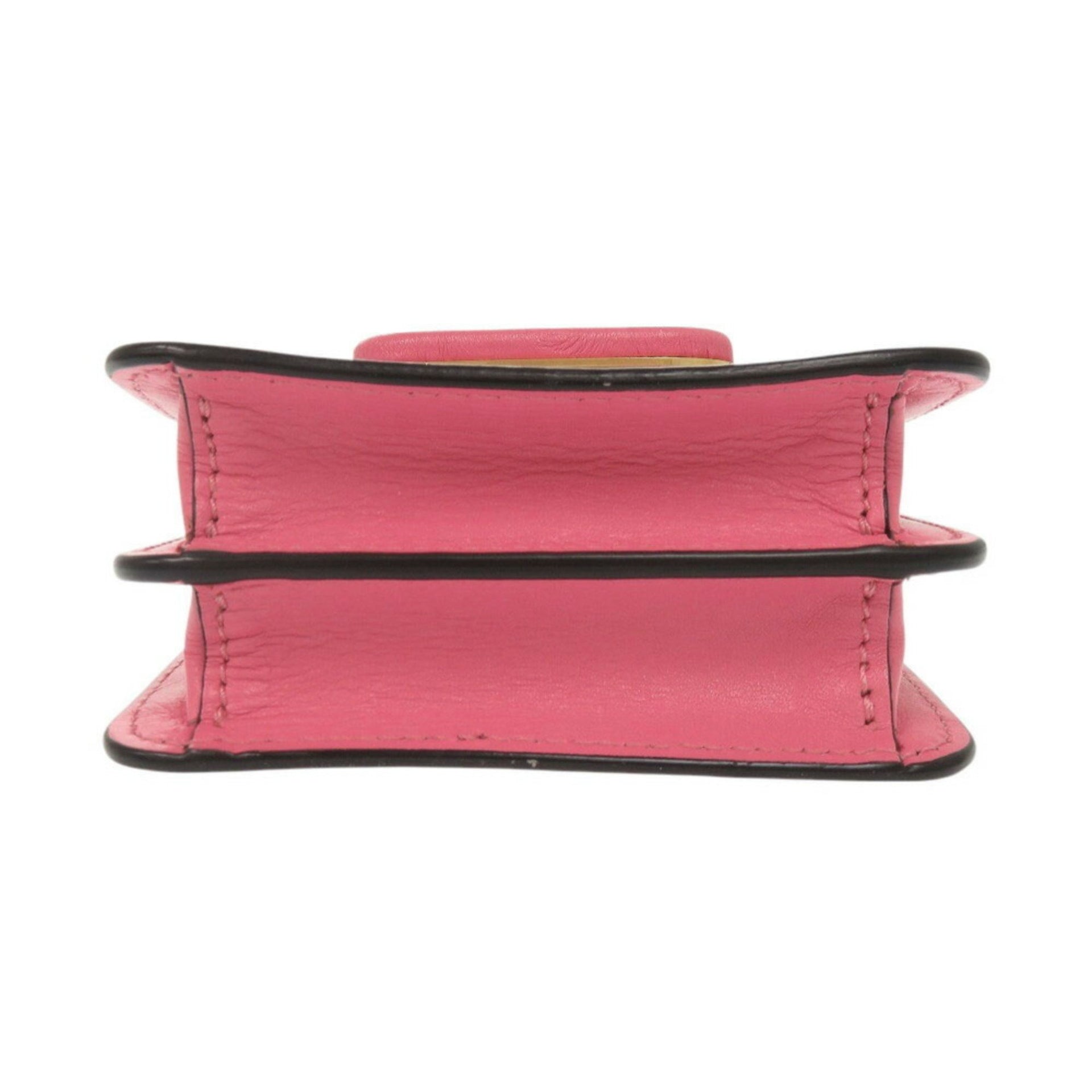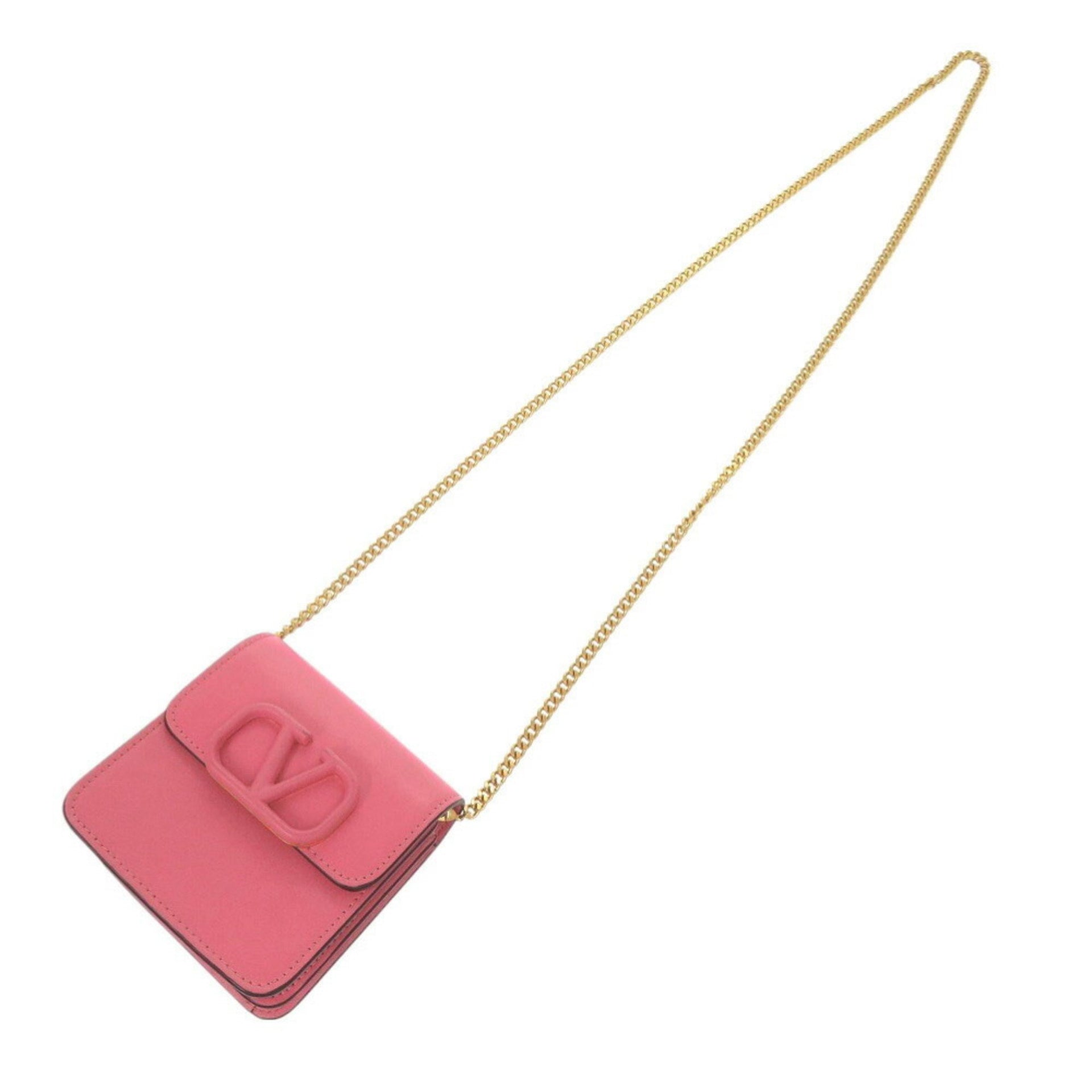 Valentino Garavani V-Sling Compact Leather Pink Chain Wallet Shoulder Bag 0328Valentino