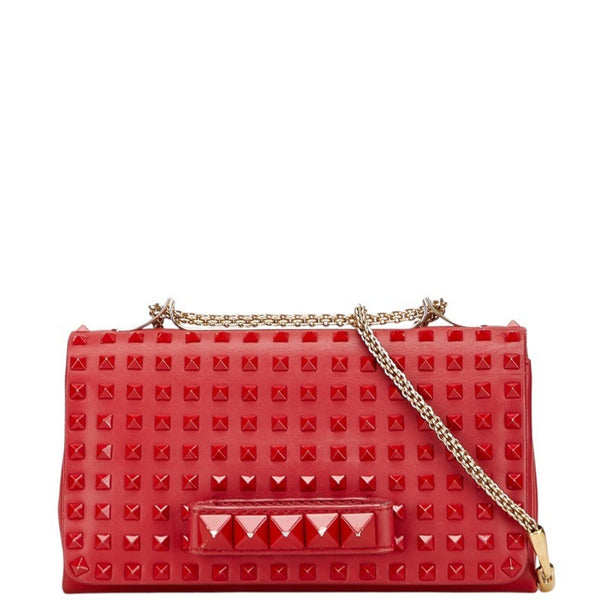 Valentino Studded Chain Shoulder Bag in Red Leather for Women