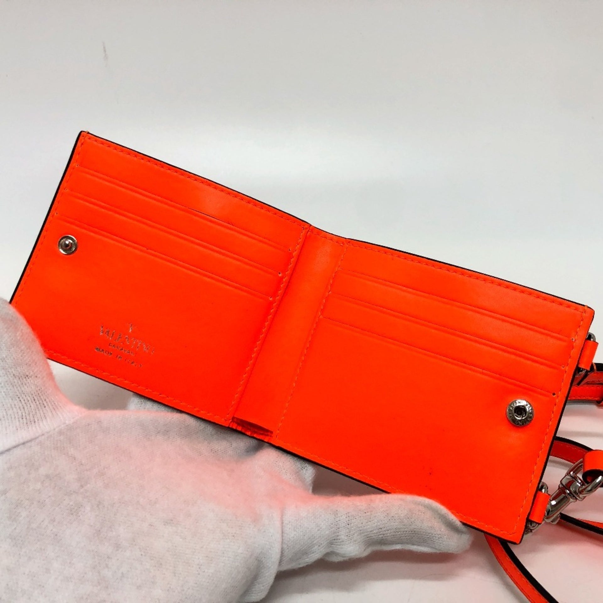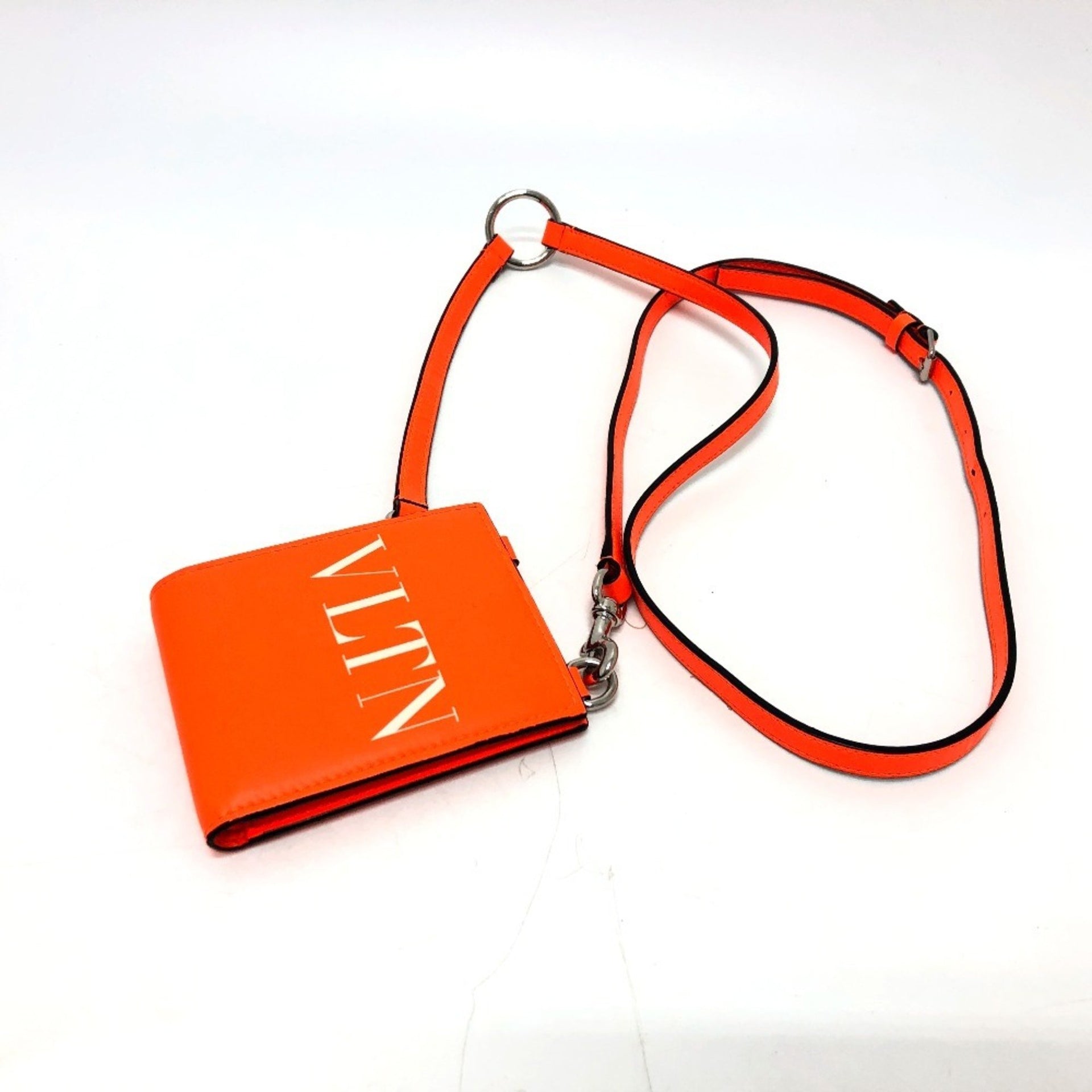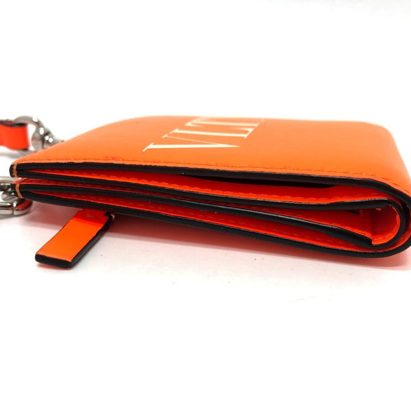 VALENTINO VLTN Logo Neck Strap Wallet Folding Bi-fold Leather Women\'s Orange