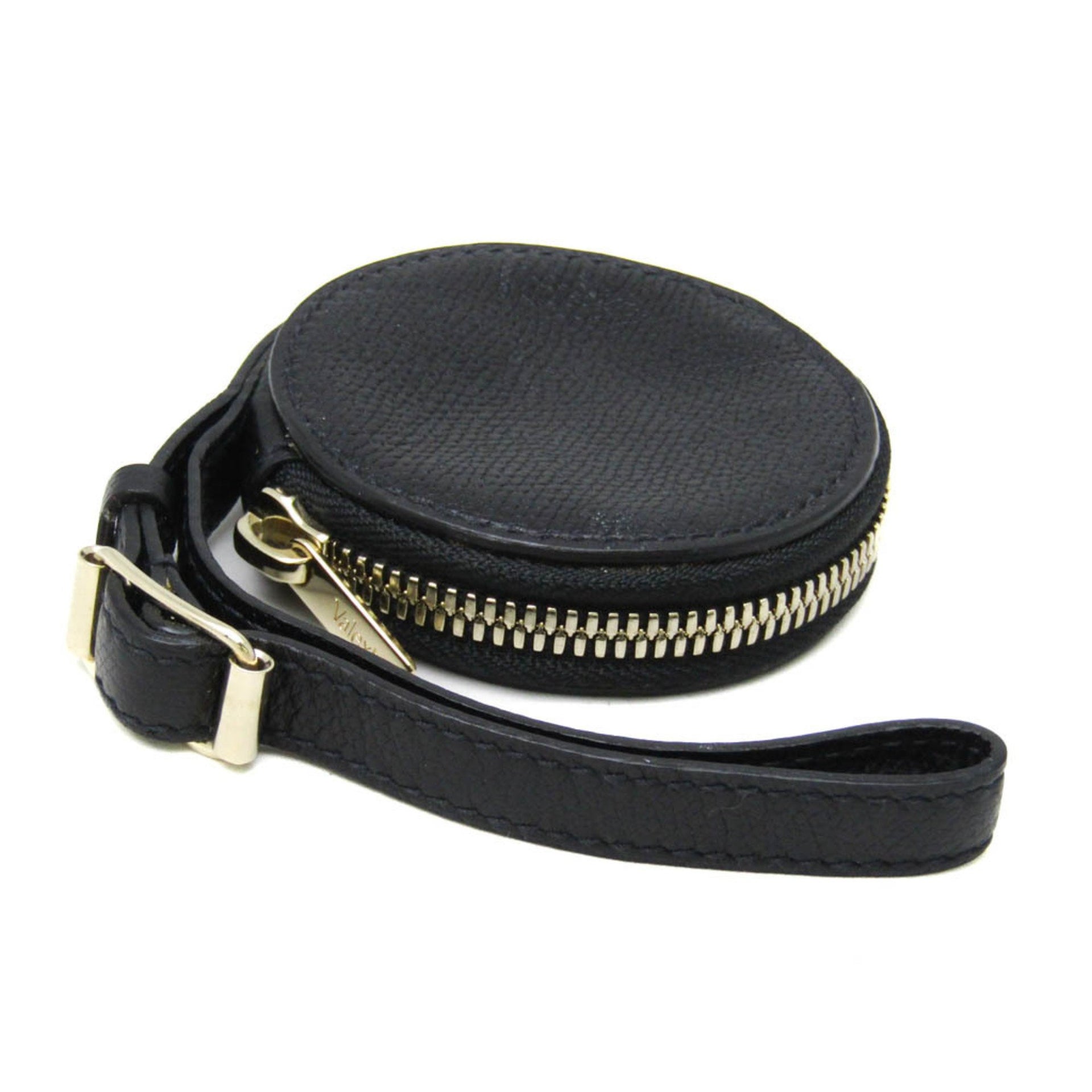 Valextra Round Type Men,Women Leather Coin Purse/coin Case Black