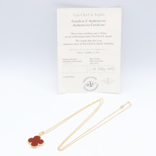 Van Cleef & Arpels Magic Alhambra Carnelian Necklace, 18K Yellow Gold, Carnelian, Women\'s, Gold and Red, VCARO49N00