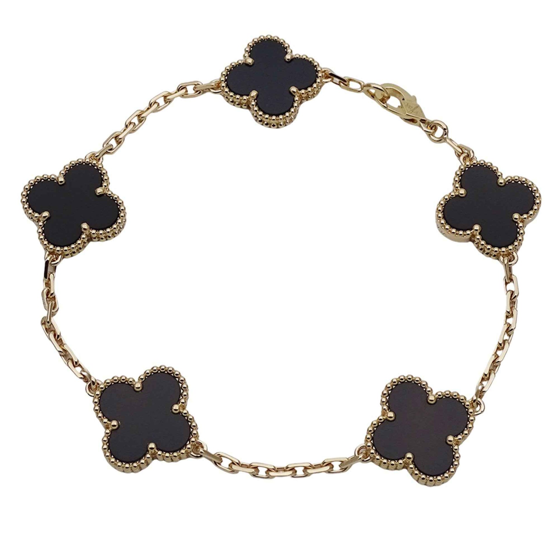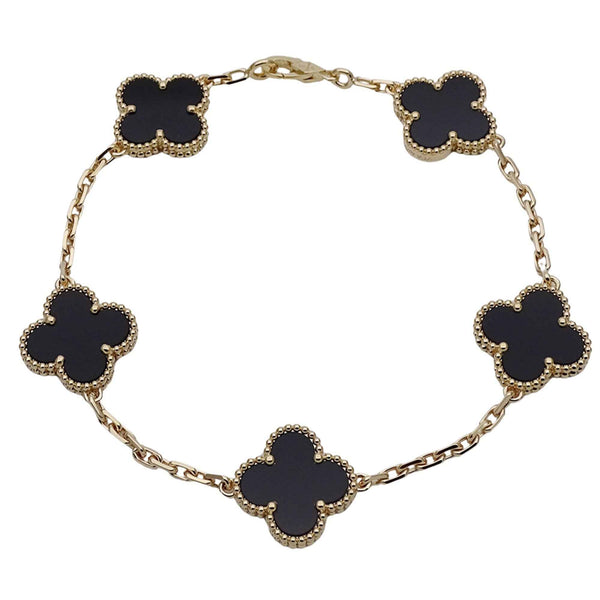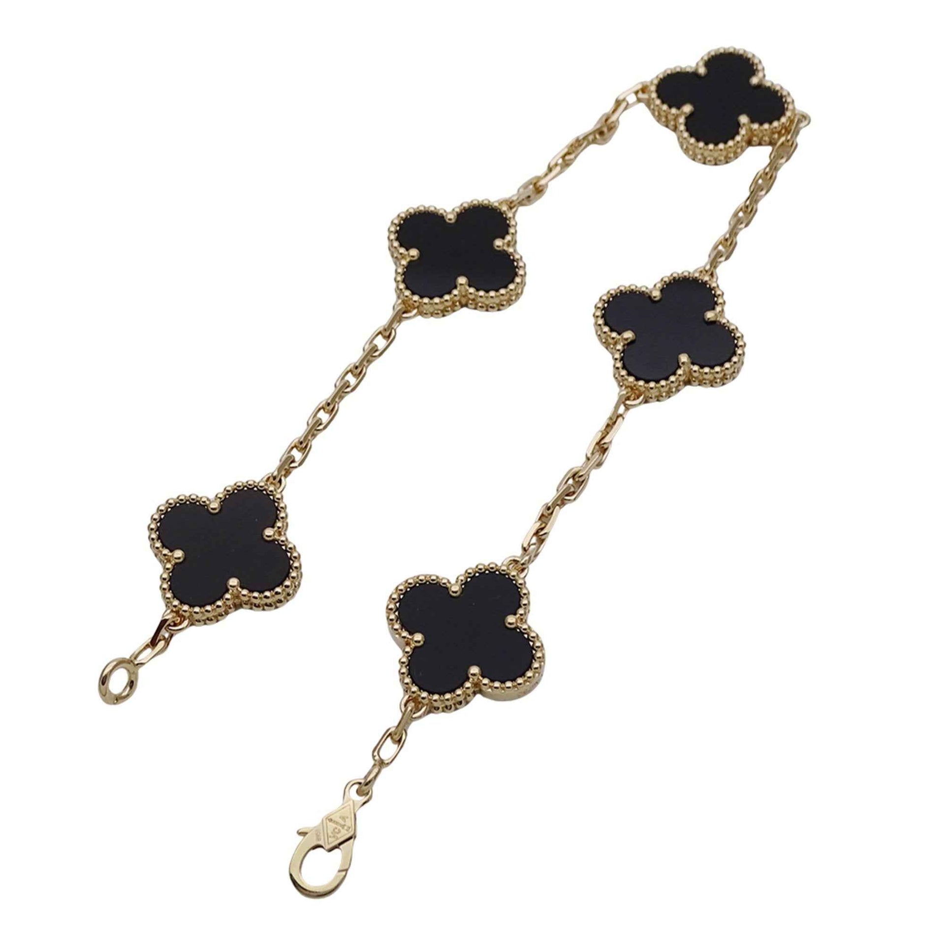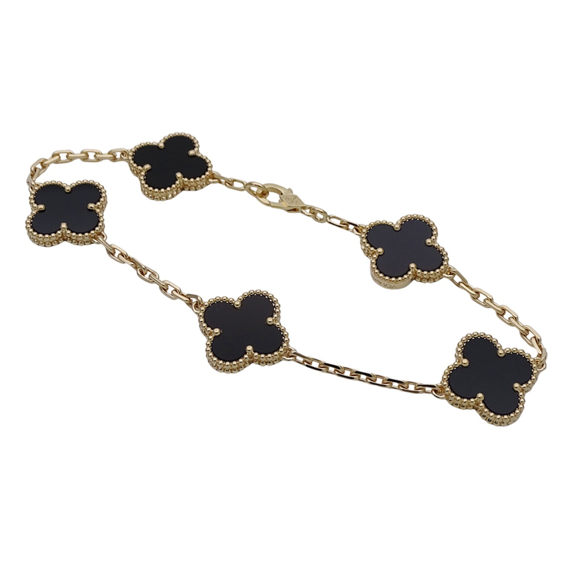 Van Cleef & Arpels Vintage Alhambra Bracelet for Women, 5 Motifs, 750YG Onyx and Yellow Gold, Polished