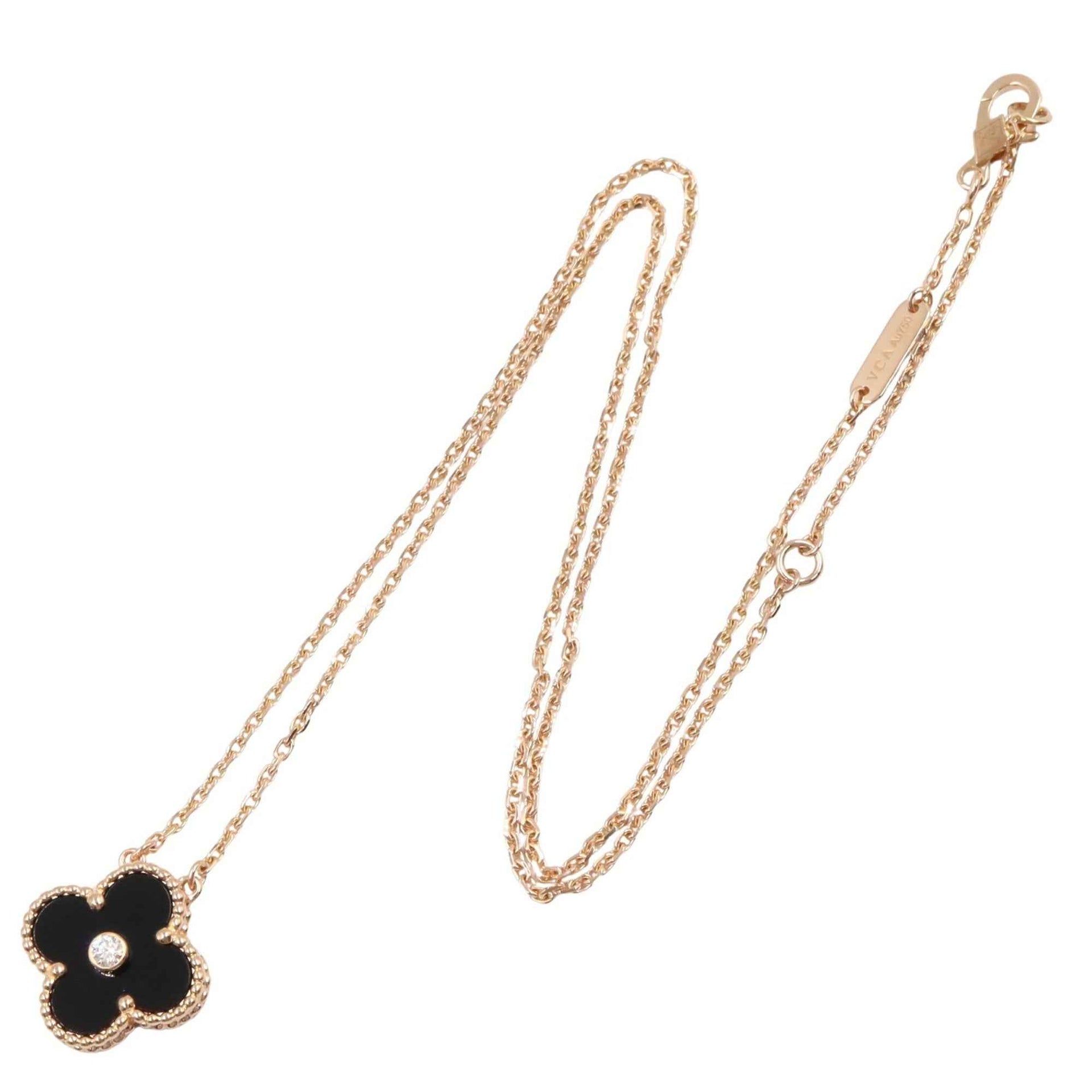 Van Cleef & Arpels Vintage Alhambra Necklace, Onyx, 1PD, 18K Pink Gold with Diamonds, Clear, and Black.