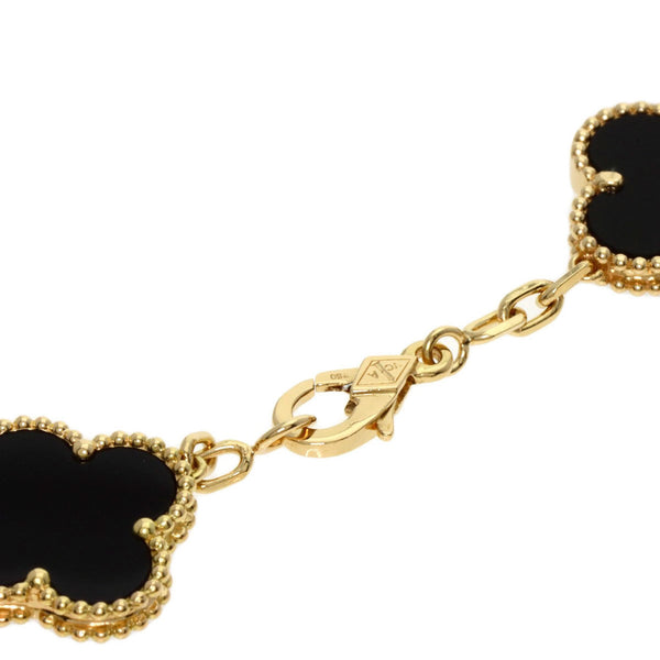 Van Cleef & Arpels Vintage Alhambra Onyx 5-Motif Bracelet in 18K Yellow Gold for Women.