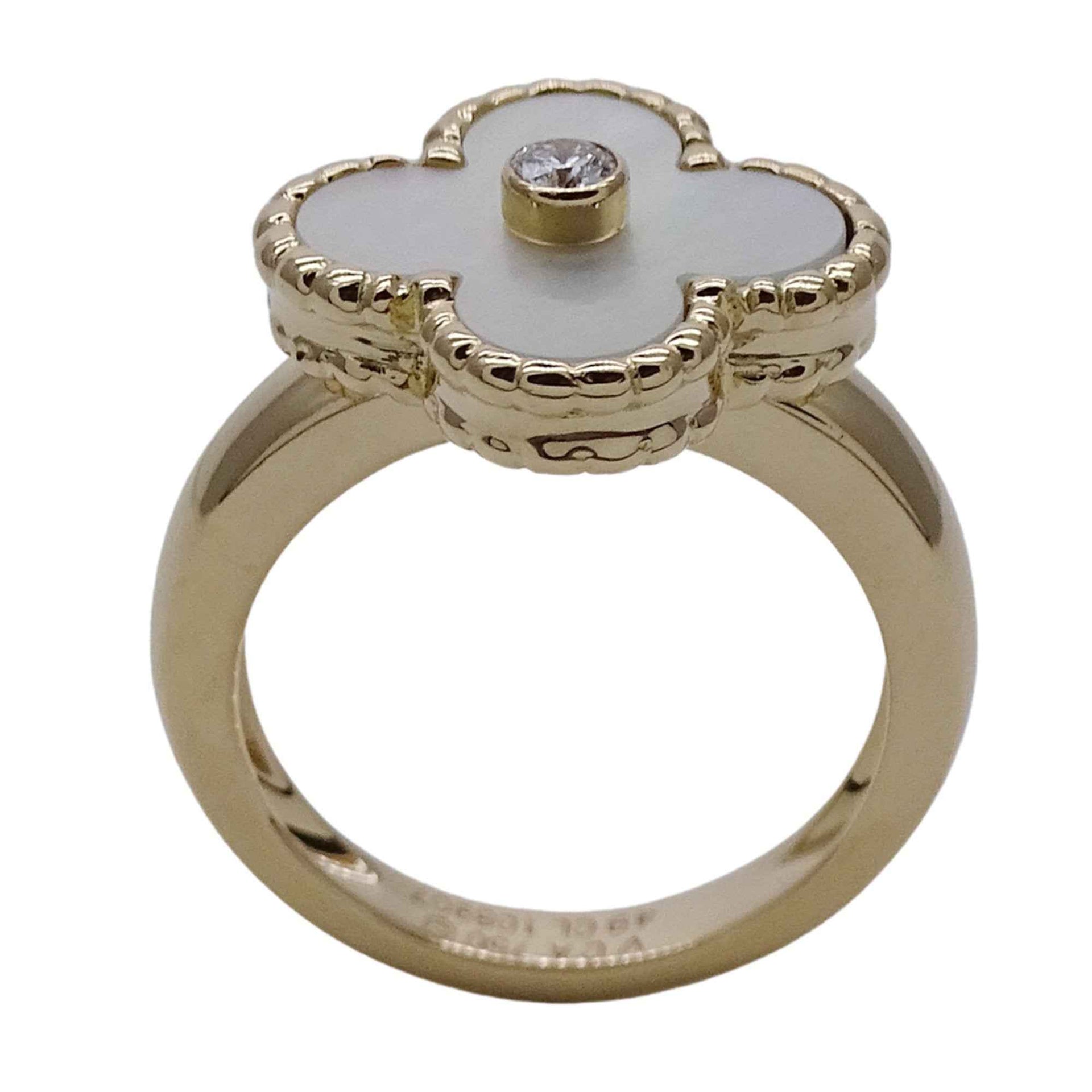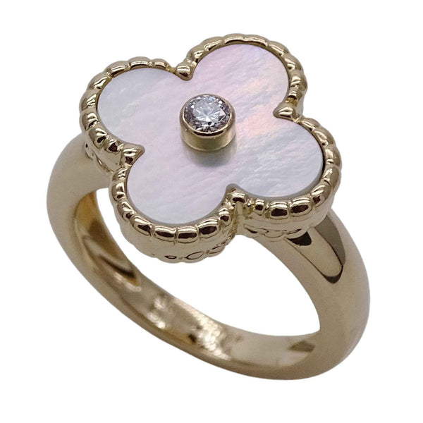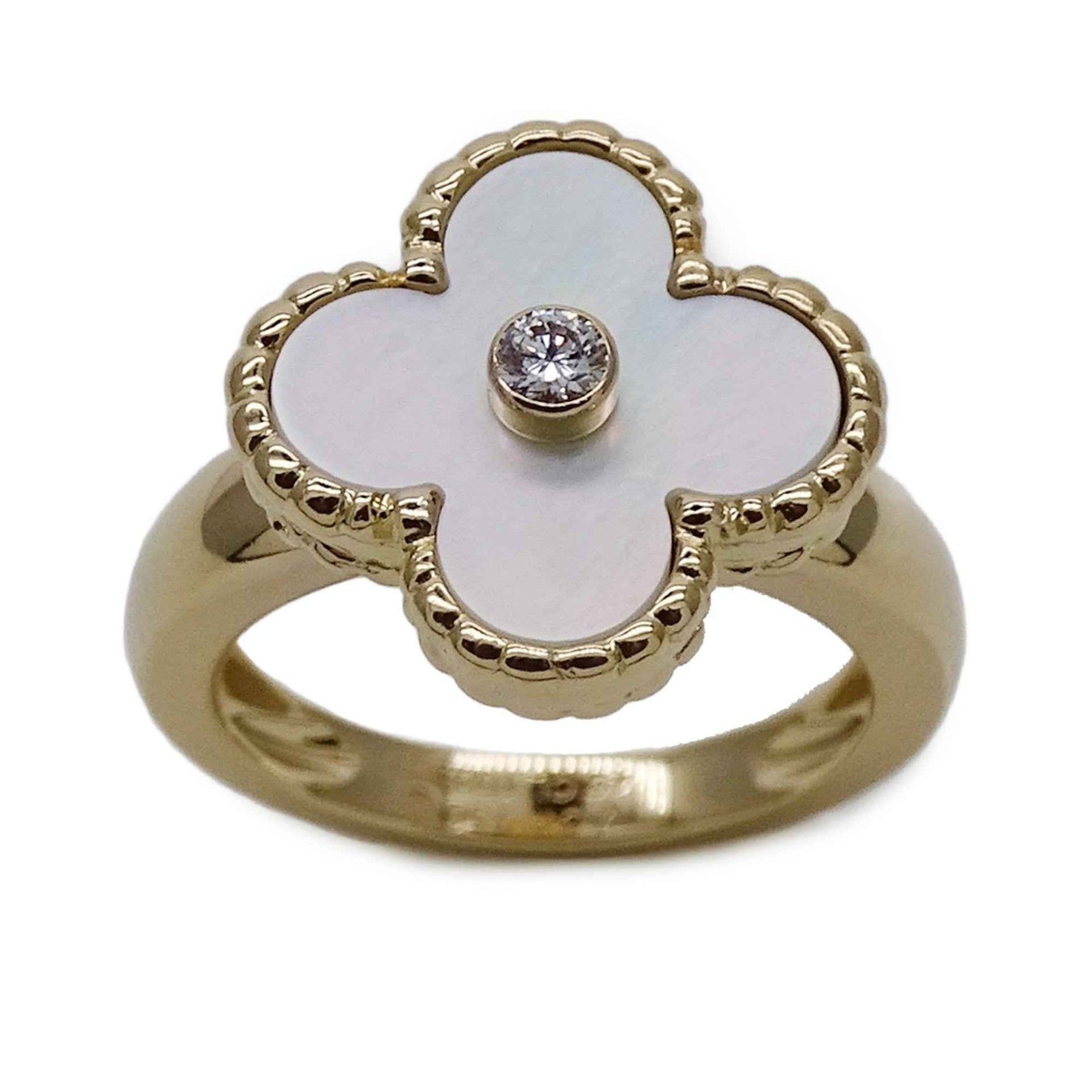 Van Cleef & Arpels Vintage Alhambra Ring, Women\'s, 750YG Mother-of-Pearl, Single Diamond, Yellow Gold, #49, Polished, Approx.