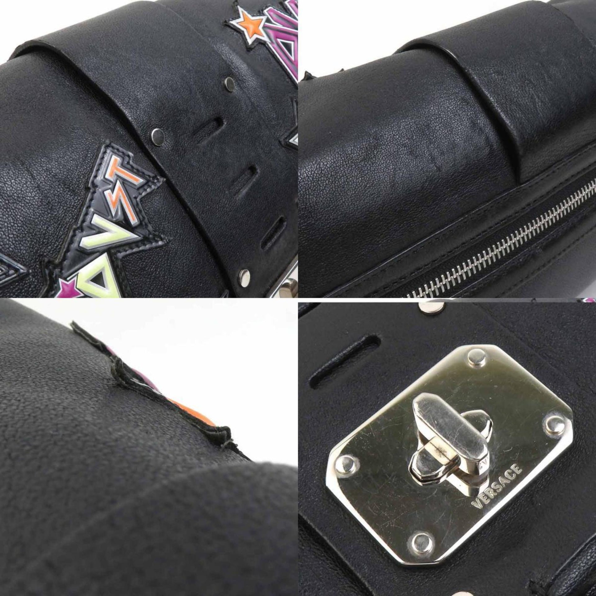 Versace 2-Way Shoulder Bag in Black, Multicolored Leather, and Silver (e60735a)