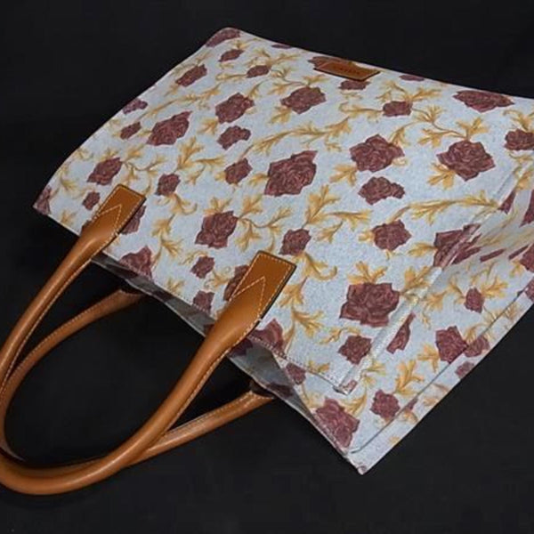 VERSACE handbag - Light blue and brown canvas leather, rose flower pattern, for women