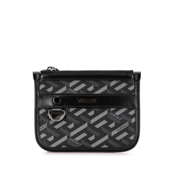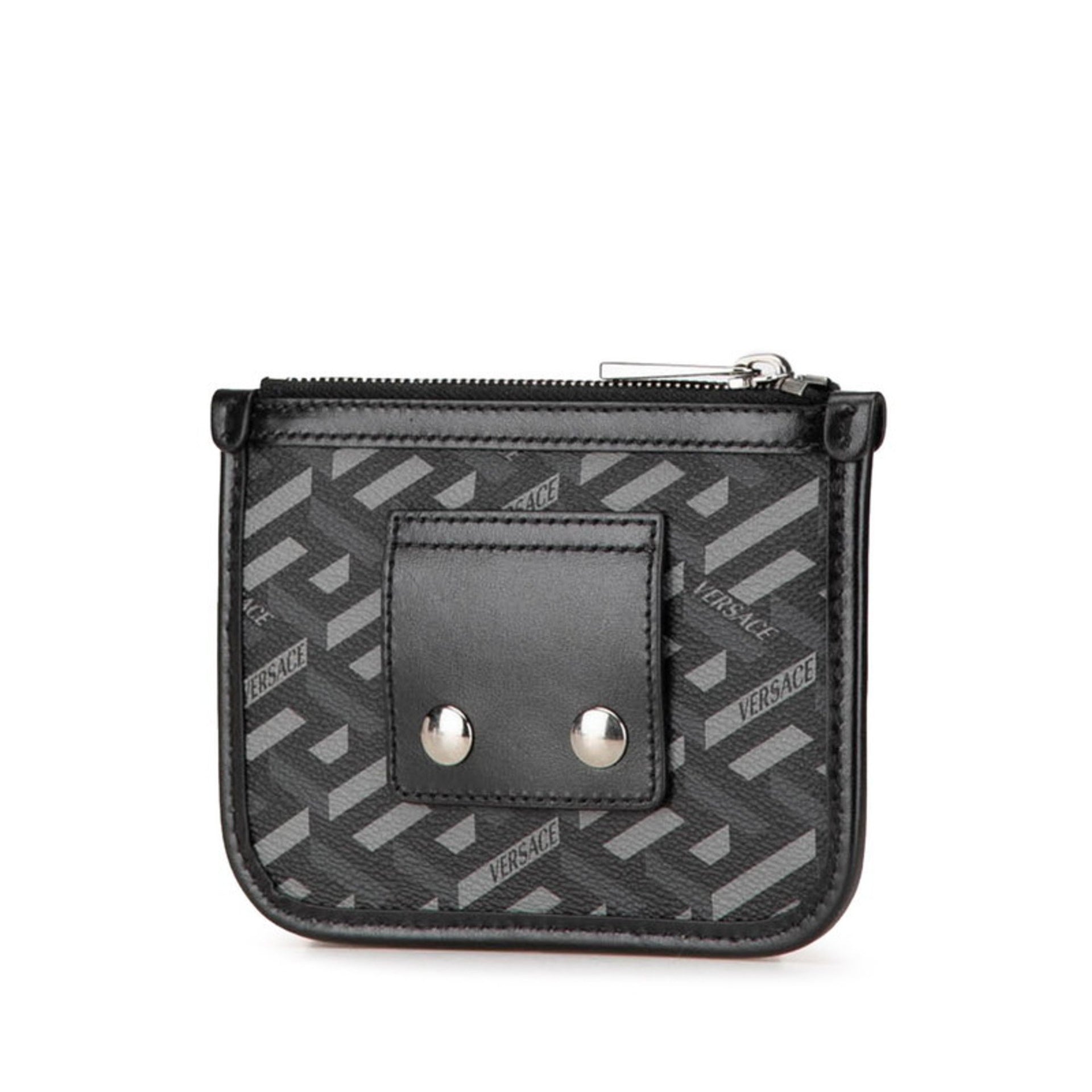 Versace La Greca Pouch Black Khaki Green PVC Leather Women\'s VERSACE