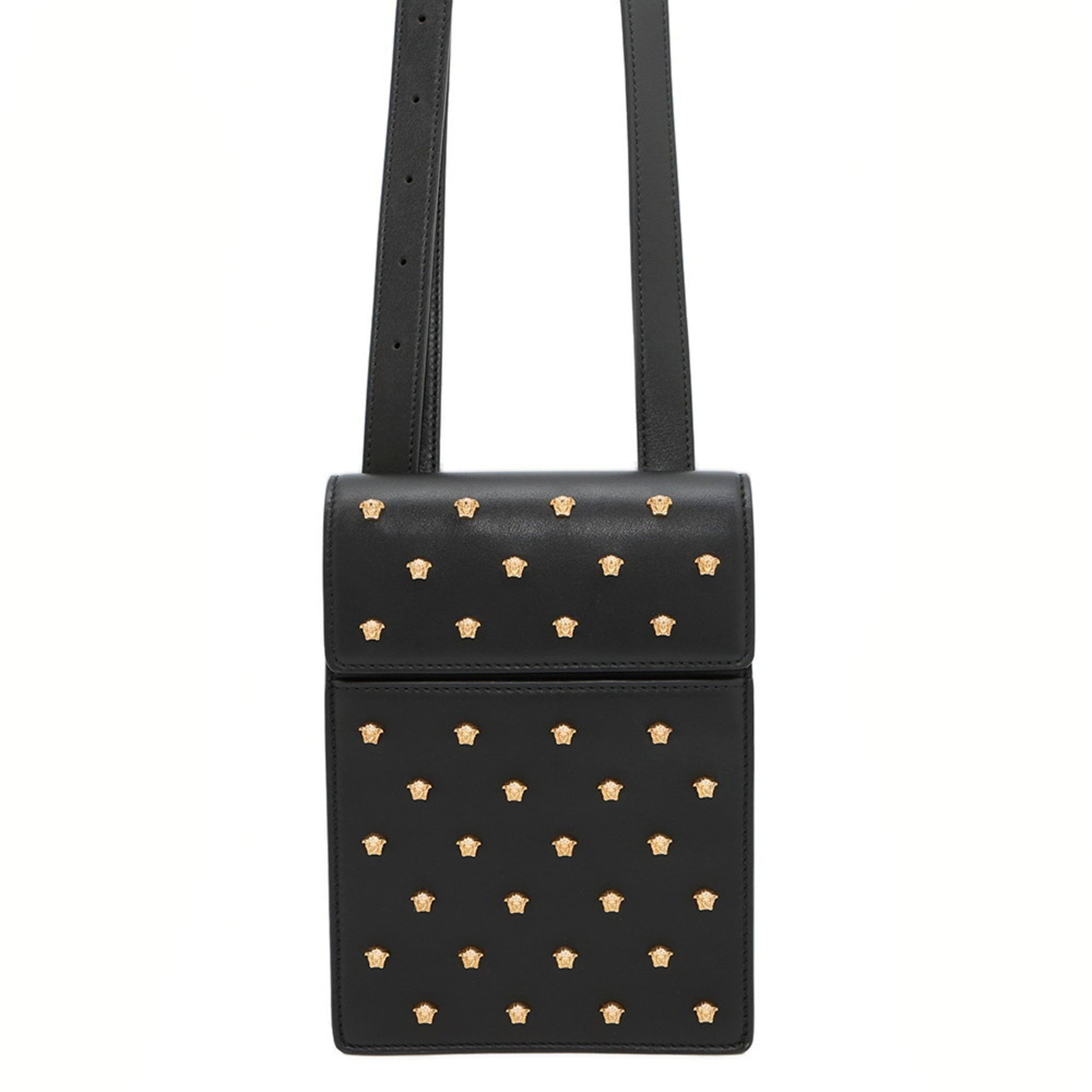 Versace Medusa Studded Leather Shoulder Bag in Black