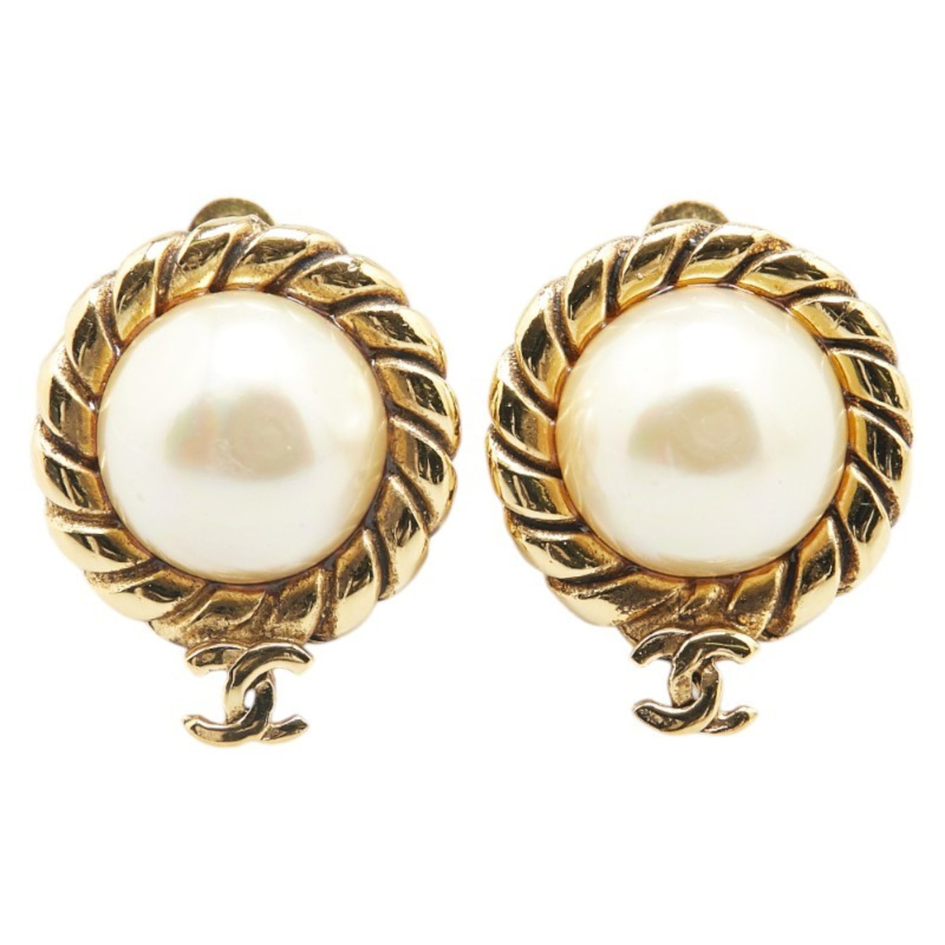 Vintage Chanel 1983 Coco Mark Earrings, Gold Plated with Faux Pearls, Women\'s